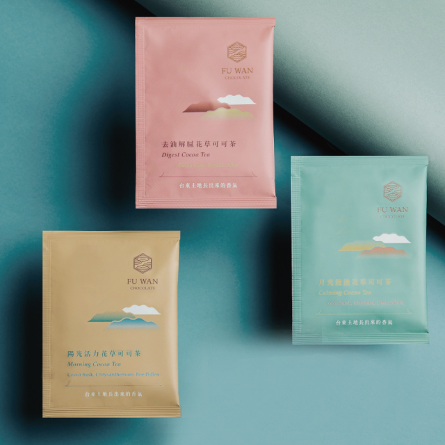 陽光活力花草可可茶,去油解膩花草可可茶,月光漫漫花草可可茶,三款與小村遠遠合作的花草可可茶,賦予由台東土地長出來的香氣。富含GABA,多酚,類黃酮。