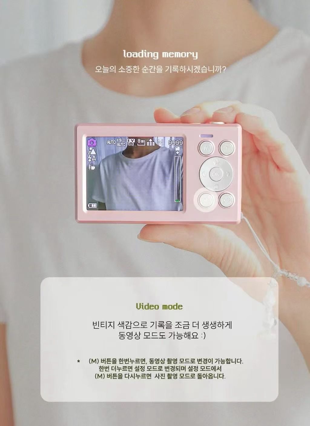 🎥 高清錄影模式 (Video Mode) 一鍵切換錄影功能,支援動態影像紀錄。適合拍攝 VLOG 或日常短影音,讓動態回憶也擁有迷人的復古色澤。