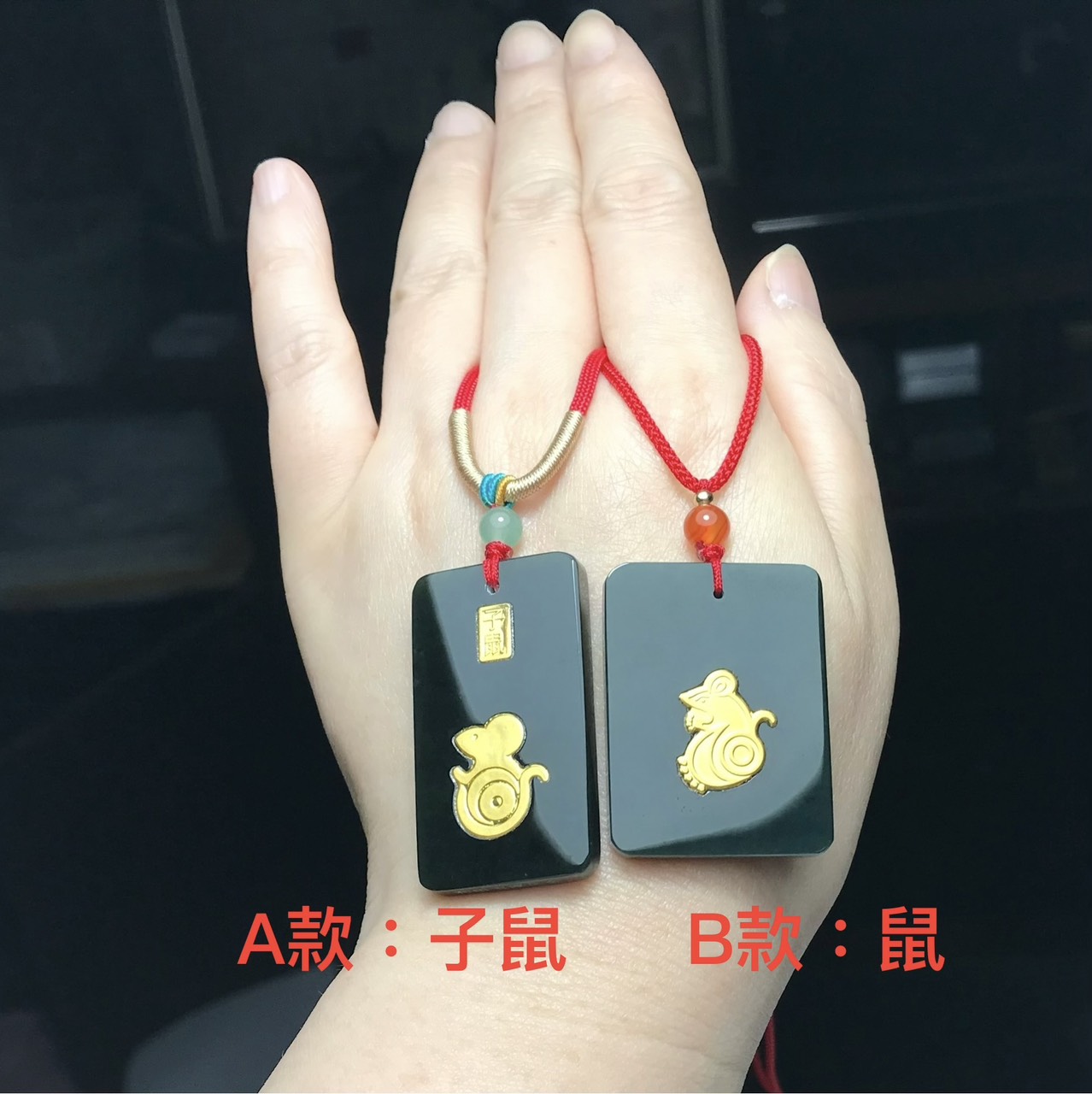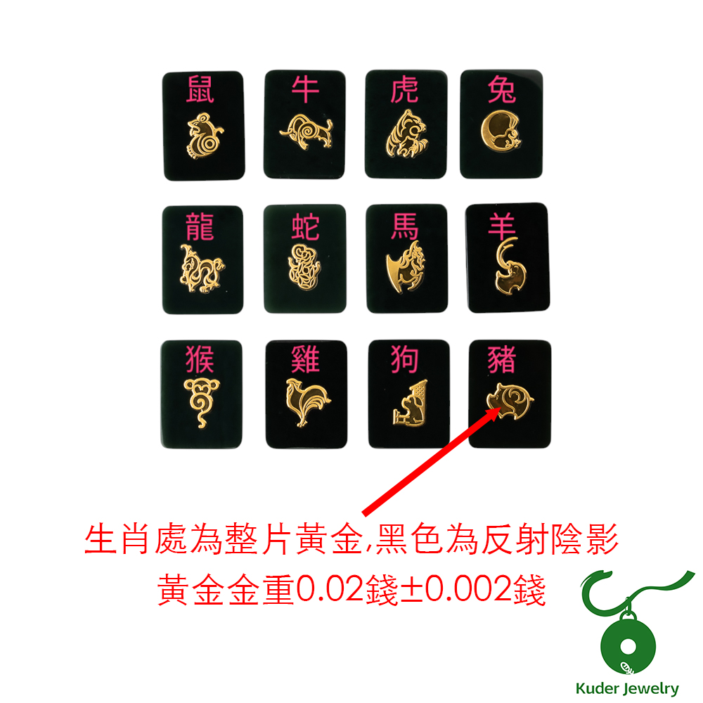 ((兩款任選))1.貨號: KD026-78A01 子鼠 至 78A11 戊狗A款 純金黃金 鑲天然和田墨玉 地支生肖玉牌成品尺寸: 約45.0 * 24.8* 4.7 mm黃金重量: 約0.06 g± 0.01g約0.02錢附鏈為中國節配繩,伴石為天然非洲翠,佩戴長度可以調節.