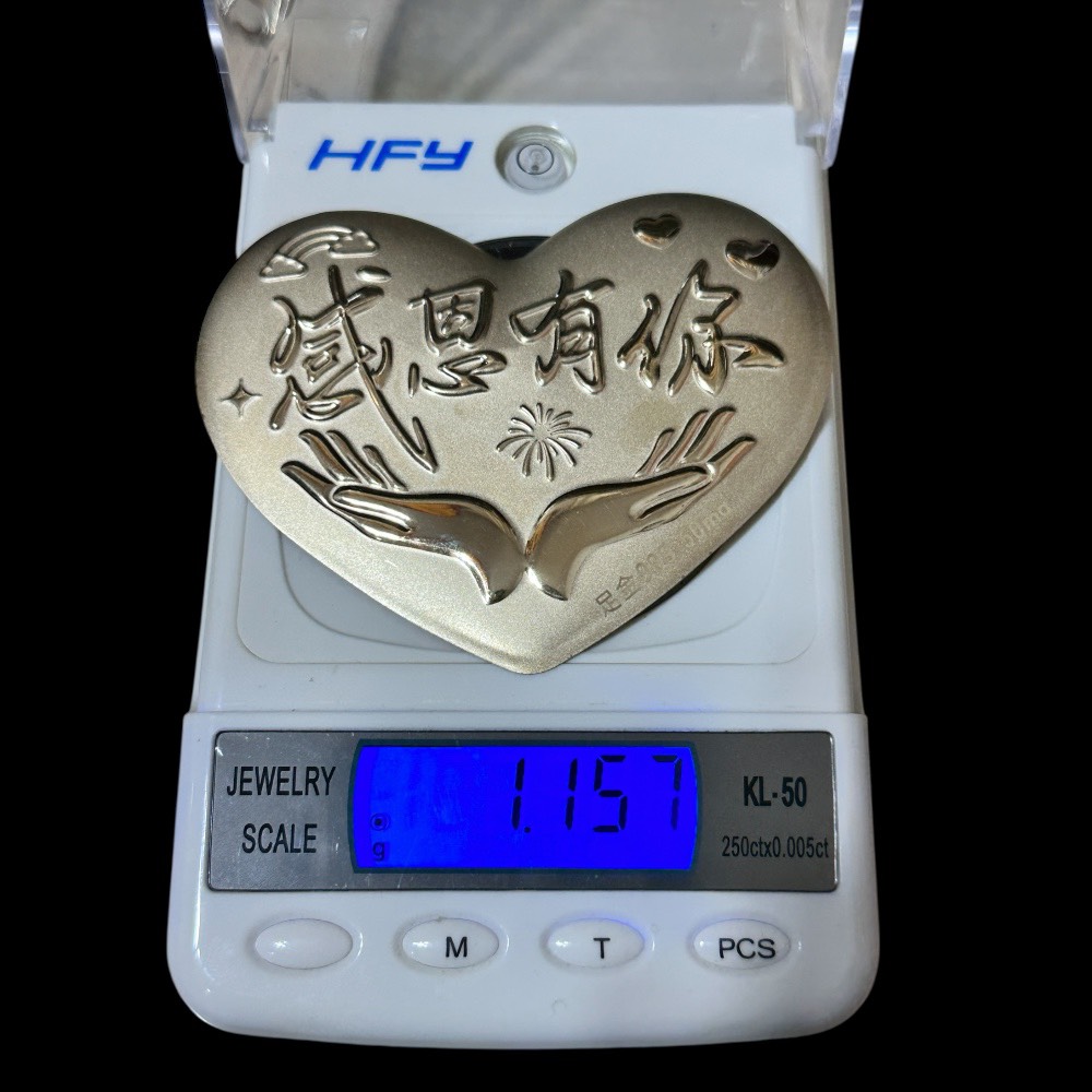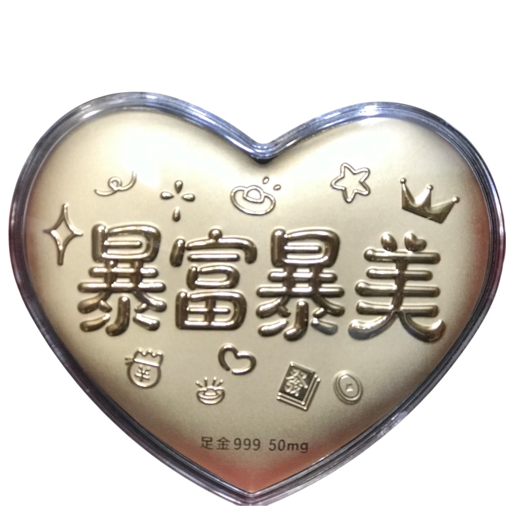 商品介紹本組金牌含黃金量為正面金牌質重的一成,含黃金量約面刻50mg以上. 下面有EDXRF-X光光譜儀檢測數量. 貨號: KD026-G79 金牌任選組 成品尺寸含PC罩感恩有你-心形整體尺寸:約93*76.5*11.0mm花開富貴-圓形整體尺寸:約105*105*8.5mm越來越好-圓形整體尺寸:約105*105*8.5mm我把心給了你-心形尺寸:約105*97*8.0mm遇見愛 -心形整體尺寸:約105*90*8.5mm暴富暴美-心形整體尺寸:約105*90*8.5mm