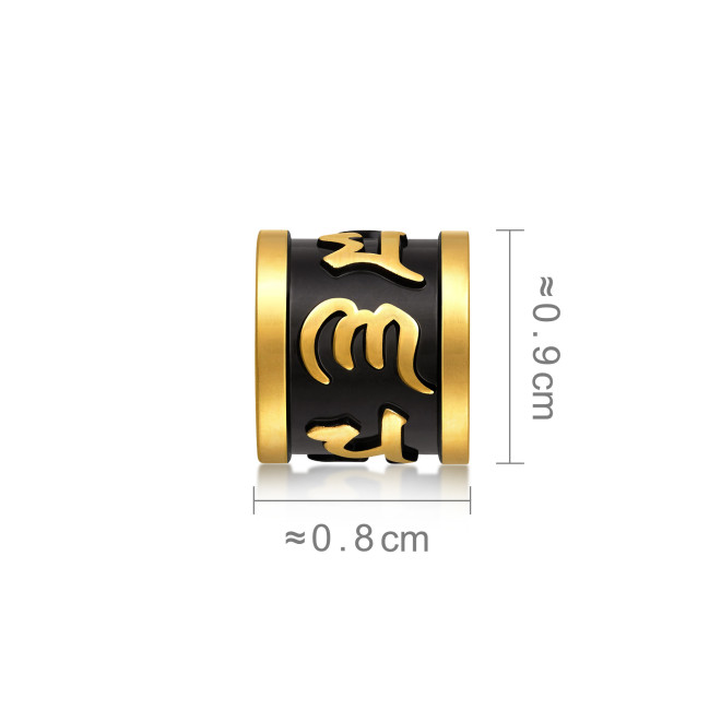 以佛教轉經筒為設計靈感,體積精緻小巧,質感細膩,彩繪塗色工藝及陽刻凸起的大明咒六字真言「唵嘛呢叭咪吽」,寓意祈求平安護身、幸福圓滿。