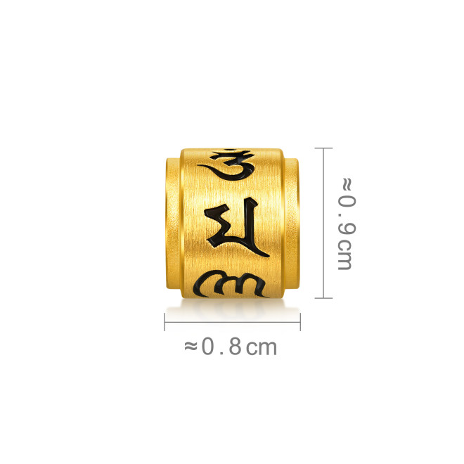 以佛教轉經筒為設計靈感,體積精緻小巧,質感細膩,彩繪塗色工藝及陰刻凹陷的大明咒六字真言「唵嘛呢叭咪吽」,寓意祈求平安護身、幸福圓滿。