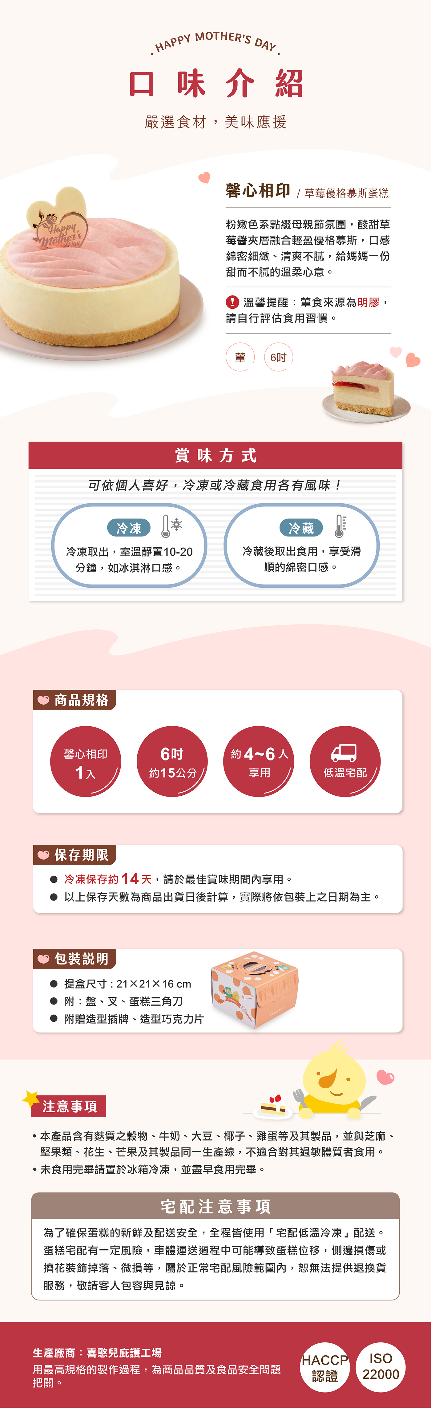 ✦內容物:馨心相印.草莓優格慕斯蛋糕6吋x1