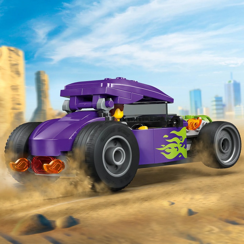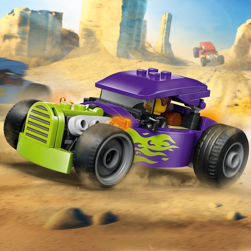 樂高城市改裝車,繫上安全帶,在刺激的扮演遊戲中展開街頭賽車冒險車身配備超大的後輪胎,並採用搭配螢光綠火焰圖案的搶眼紫色配色可掀起改裝車的車頂,可將賽車手人偶放上駕駛座尺寸-這款 81 片裝的樂高玩具改裝車高逾 6 公分、長逾 12 公分、寬逾 4 公分
