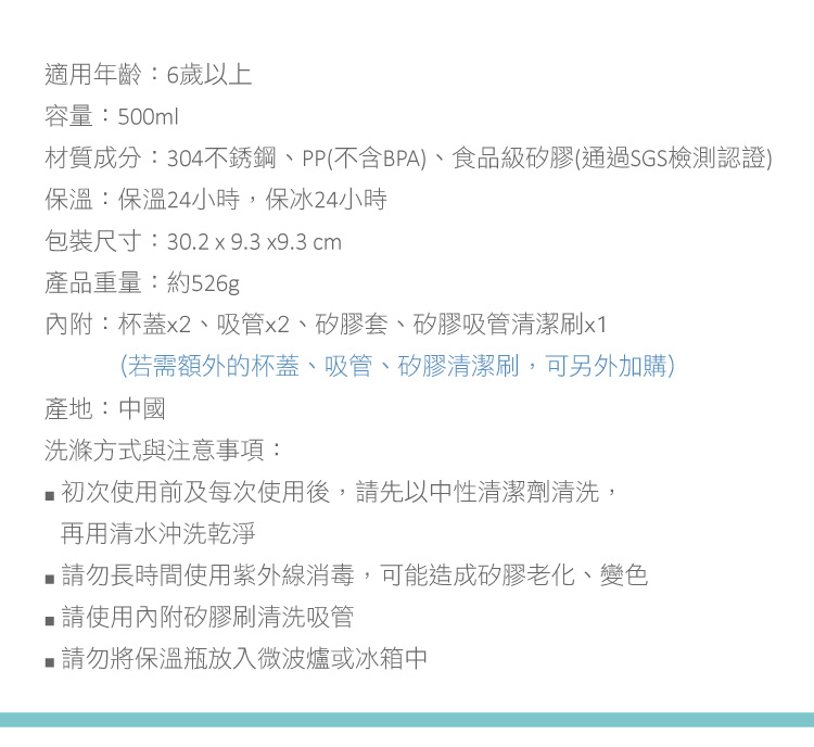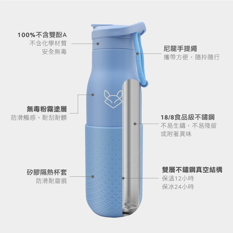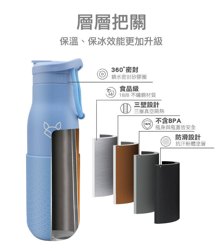★買就送長柄矽膠清潔刷★● 雙層真空304不銹鋼,內膽再鍍銅,保溫時間加倍● 保溫24小時,保冰24小時● 依您的飲用習慣:內附直飲式&吸飲式杯蓋● 最好清洗的上蓋,沒有複雜的構造● 每個水瓶都已為它穿上半身矽膠保護套