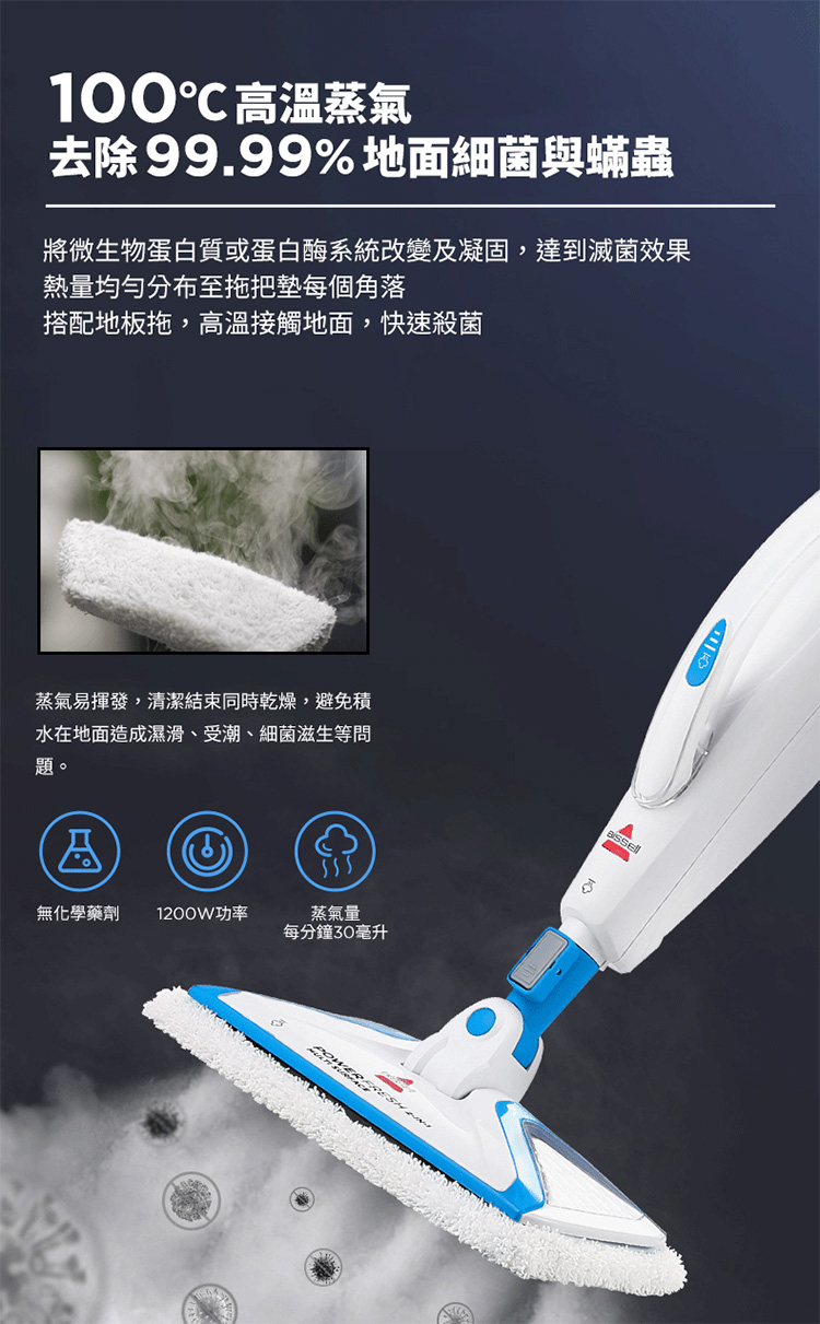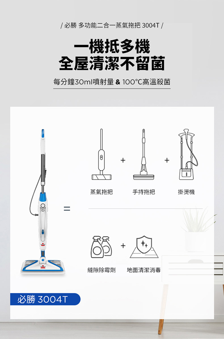 品名:Bissell 必勝 Steam Mop 多功能二合一蒸氣拖把 3004T