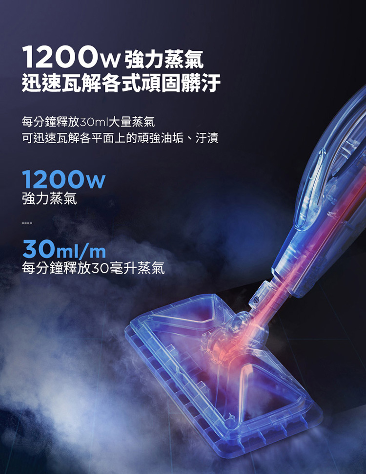 高溫蒸氣快速溶解頑固污垢,輕鬆去除地板油漬與髒污,讓居家環境煥然一新。