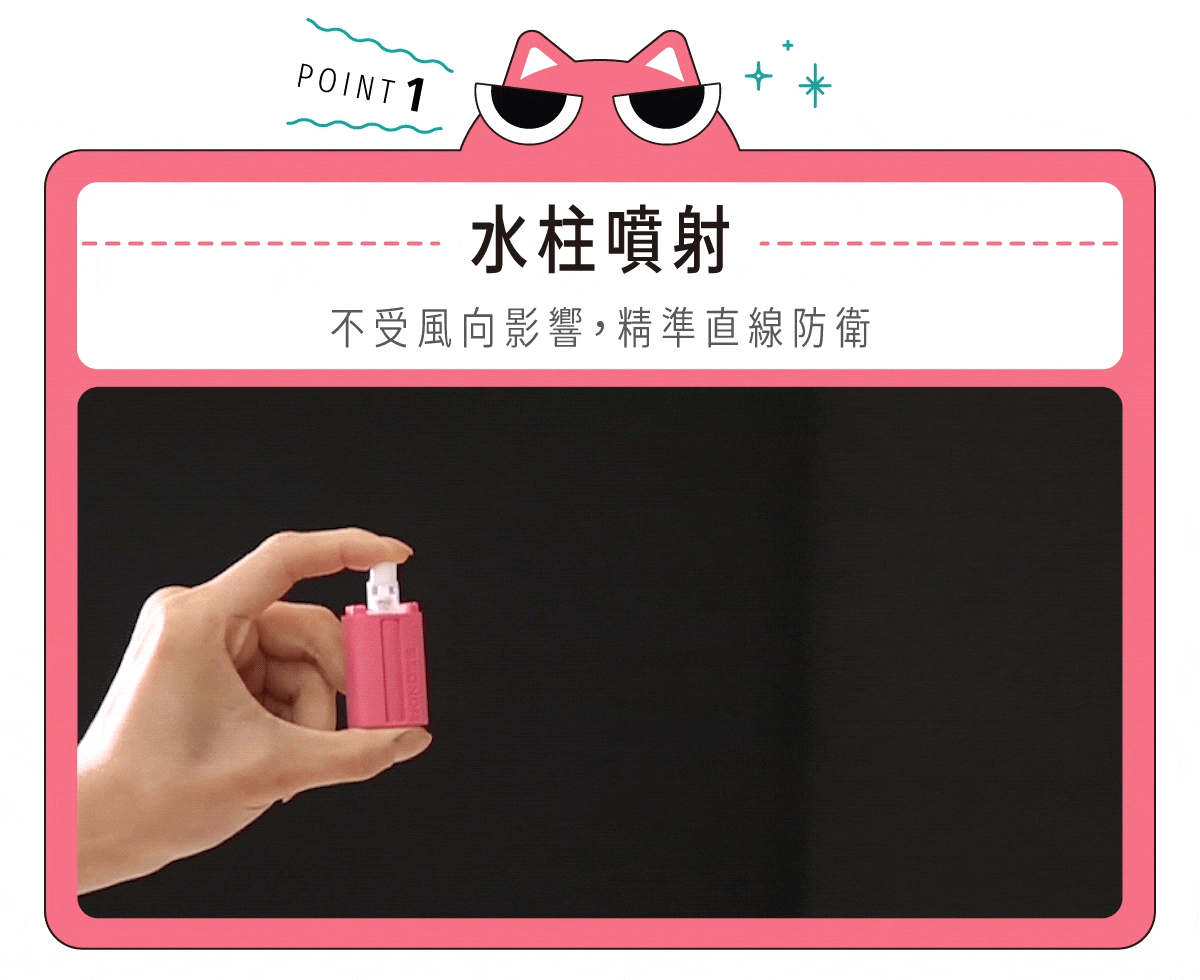 ▲ 液柱式(水柱式)設計精準命中!不會像傳統噴霧式,會有被風吹回來傷到自己的風險