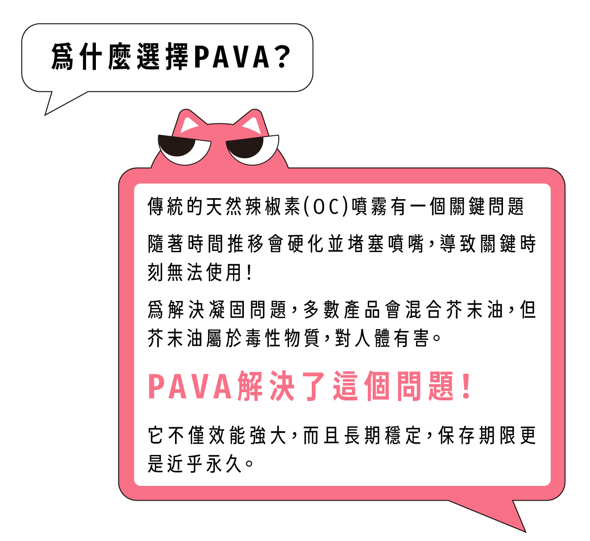 ✅ 無刺鼻辣椒味:PAVA是特殊成分,用鼻子去聞並不會有辣椒味,使用時不會讓整個空間充滿刺激性氣味,避免影響自己和旁人。