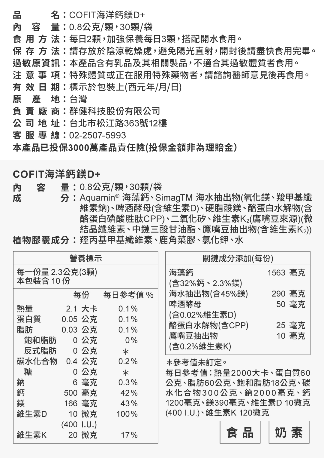 商品名: Cofit 海洋鈣鎂D+