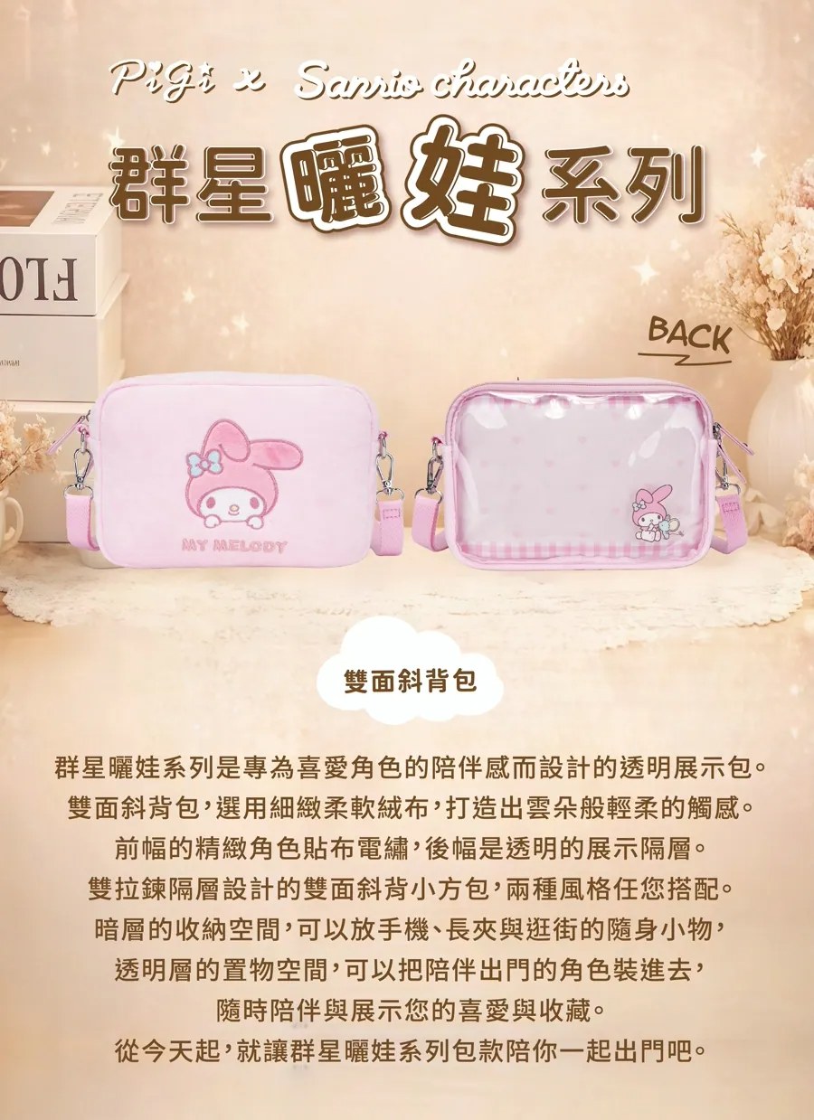 【PG 美人網】三麗鷗Sanrio 群星曬娃系列-雙層零錢包/斜背手機包/雙面斜背包/手提包/後背包【墊腳石】娃包 痛包 | NearMe | 線上送禮平台『獨家支援 收禮者改選禮物』