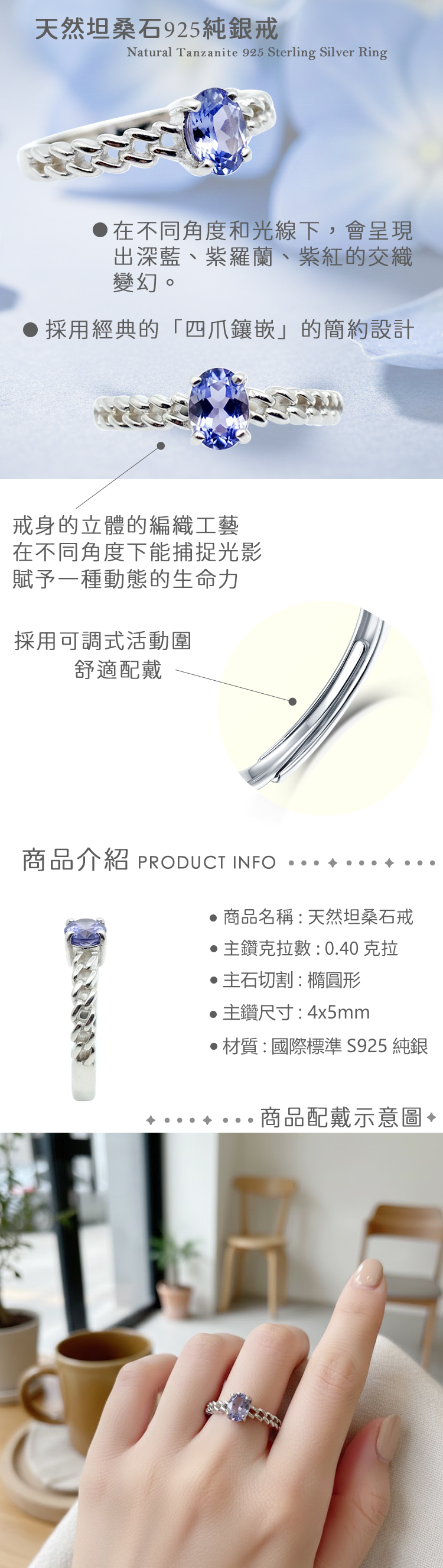 名稱:《愛戀交織》天然坦桑石(丹泉石) 40分女戒