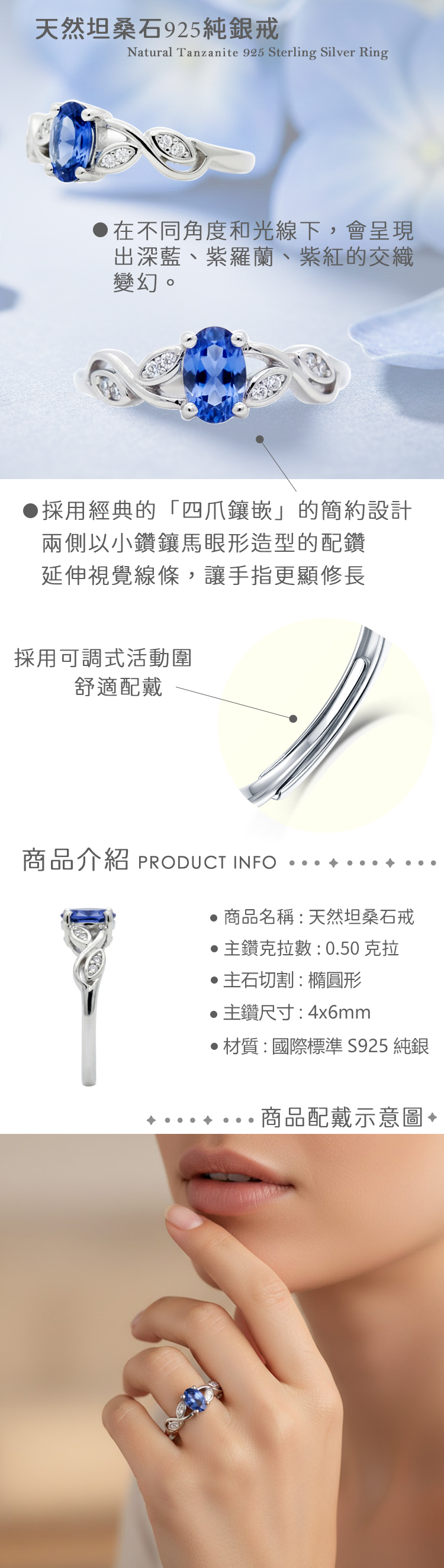 名稱:《藍精靈》天然坦桑石(丹泉石) 50分女戒