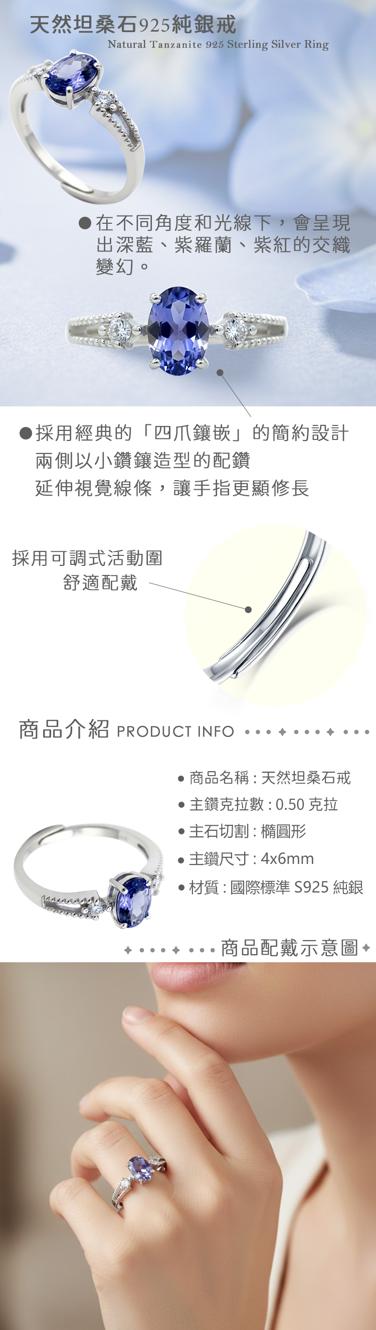 材質:天然坦桑石(丹泉石) / 925純銀