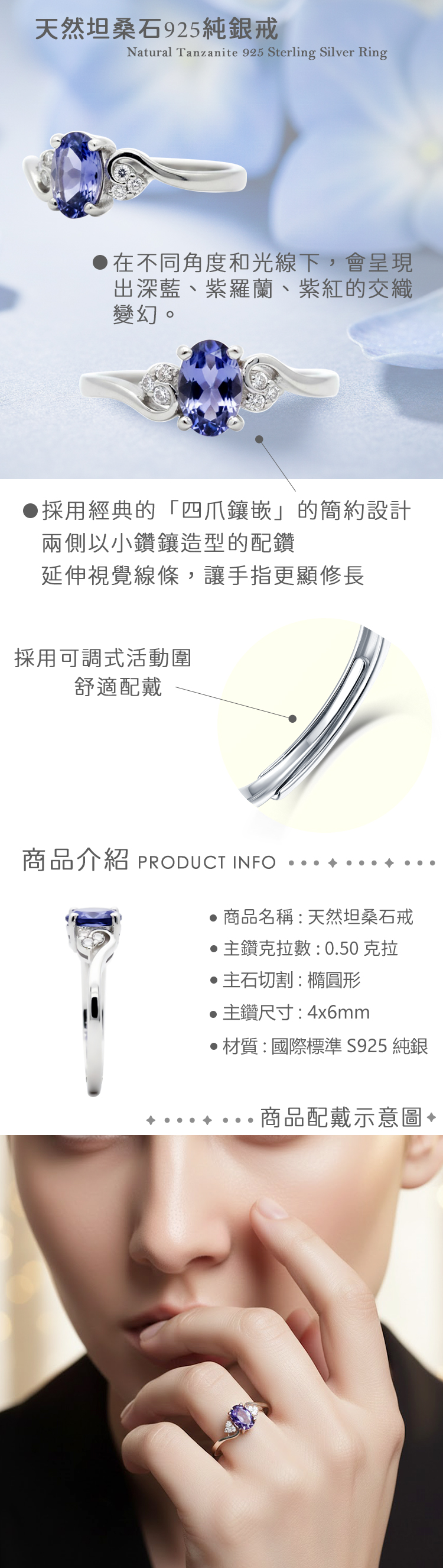 名稱:《幻夢》天然坦桑石(丹泉石) 50分女戒