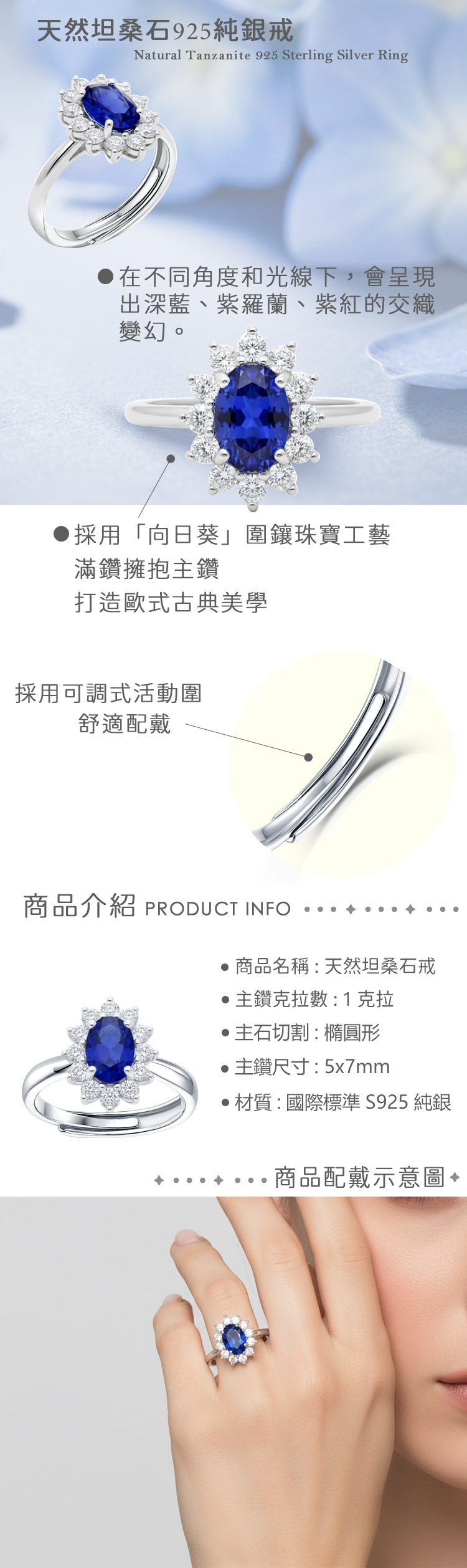 材質:天然坦桑石(丹泉石) / 925純銀
