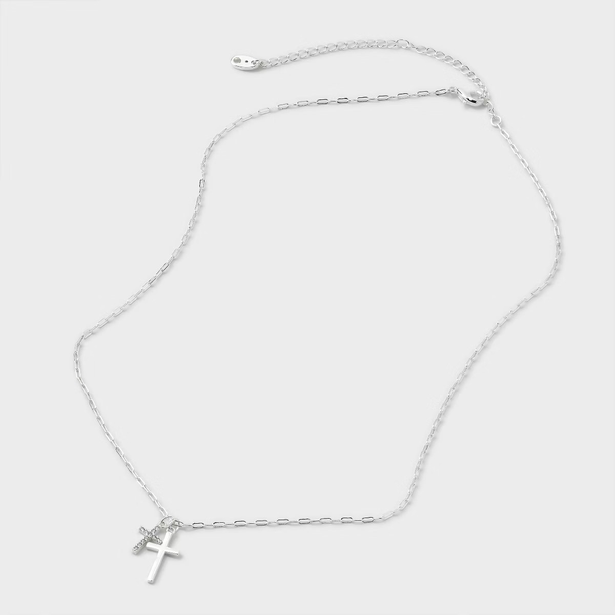 ✔ 銀色電鍍設計,質感細緻✔ 鋯石點綴,呈現自然光澤✔ 十字架吊墜造型,簡約百搭✔ 無鎳材質,日常配戴更安心✔ 龍蝦扣設計,配戴方便穩固