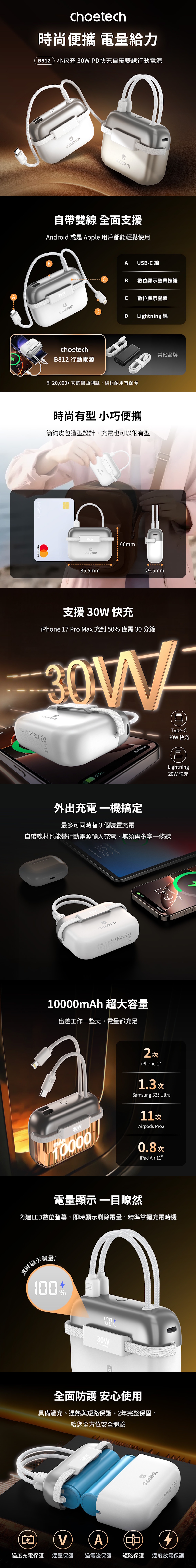 自帶 USB-C 及 Lightning 雙線,不論 iOS 或 Android 裝置都能輕鬆支援