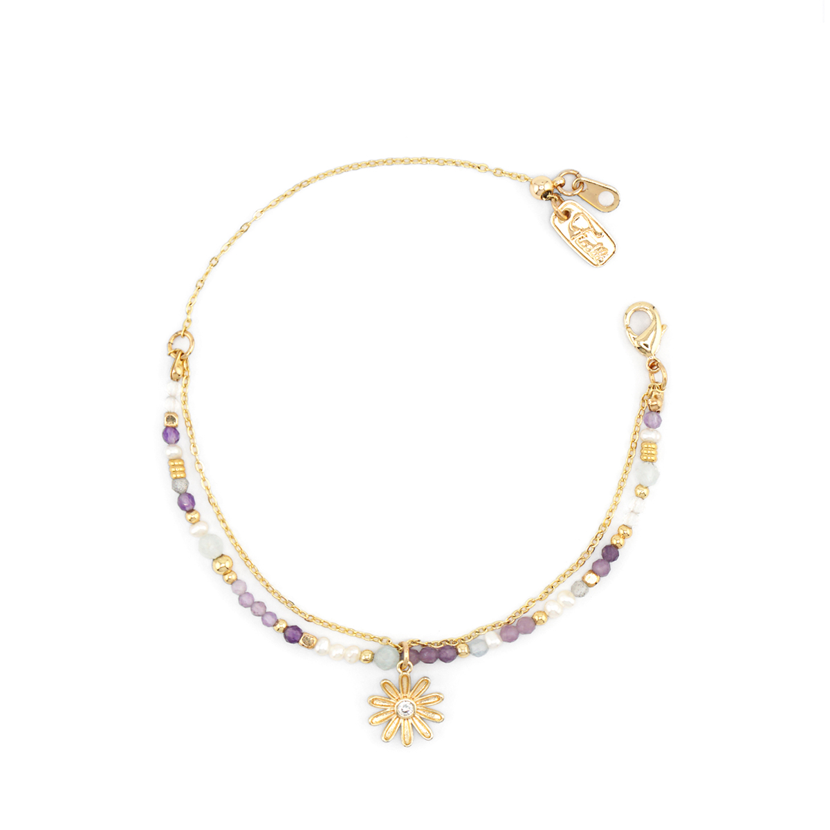商品名稱:守護花 • 牡羊座 • 翠菊 – 紫鋰雲母 – 手鍊