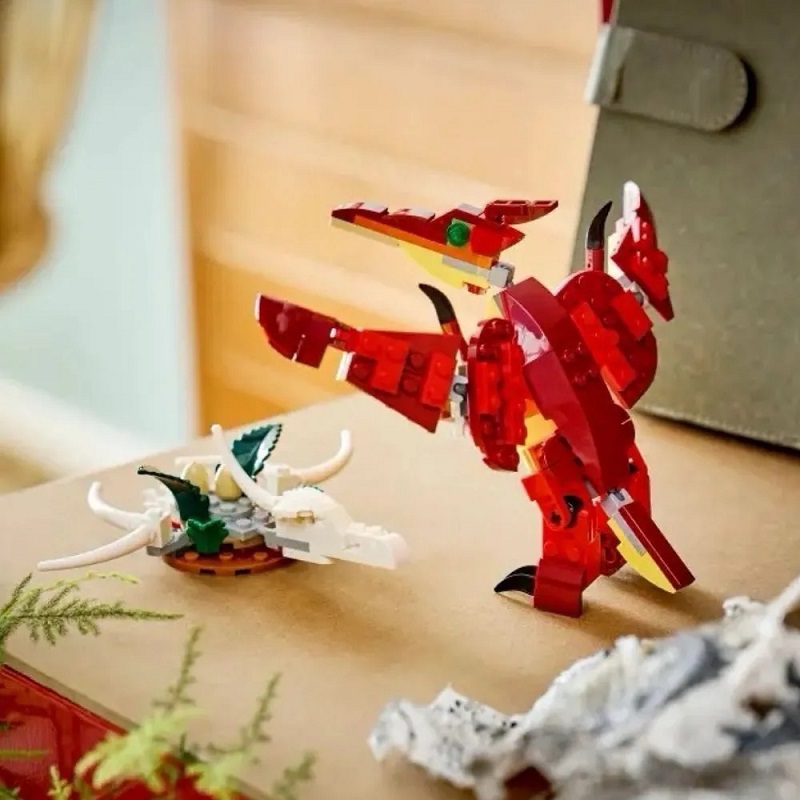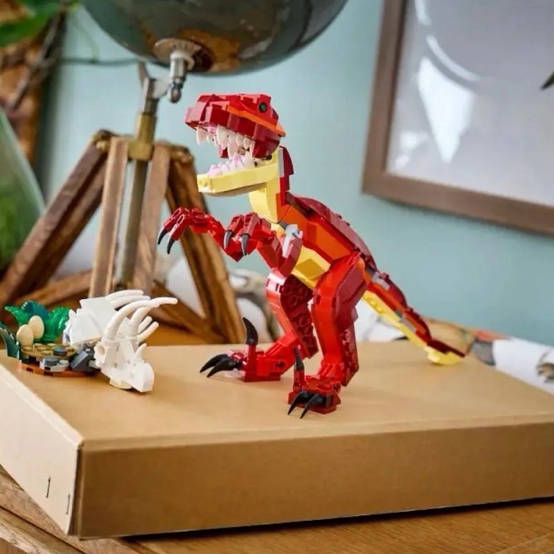 樂高創意百變系列 3 合 1 凶猛恐龍(31379)可用相同積木拼砌和重新拼砌 3 種恐龍玩具可暢玩 3 種恐龍玩偶(模型無法同時拼砌):迅猛龍、劍龍或翼龍迅猛龍玩具的下顎、頭、手臂、腿與尾巴可動;劍龍的尾巴、頭和腿可動;翼龍的翅膀、頭與腳可動尺寸-這款 283 片裝的樂高® 恐龍盒組包含站立高逾 14 公分的迅猛龍玩具