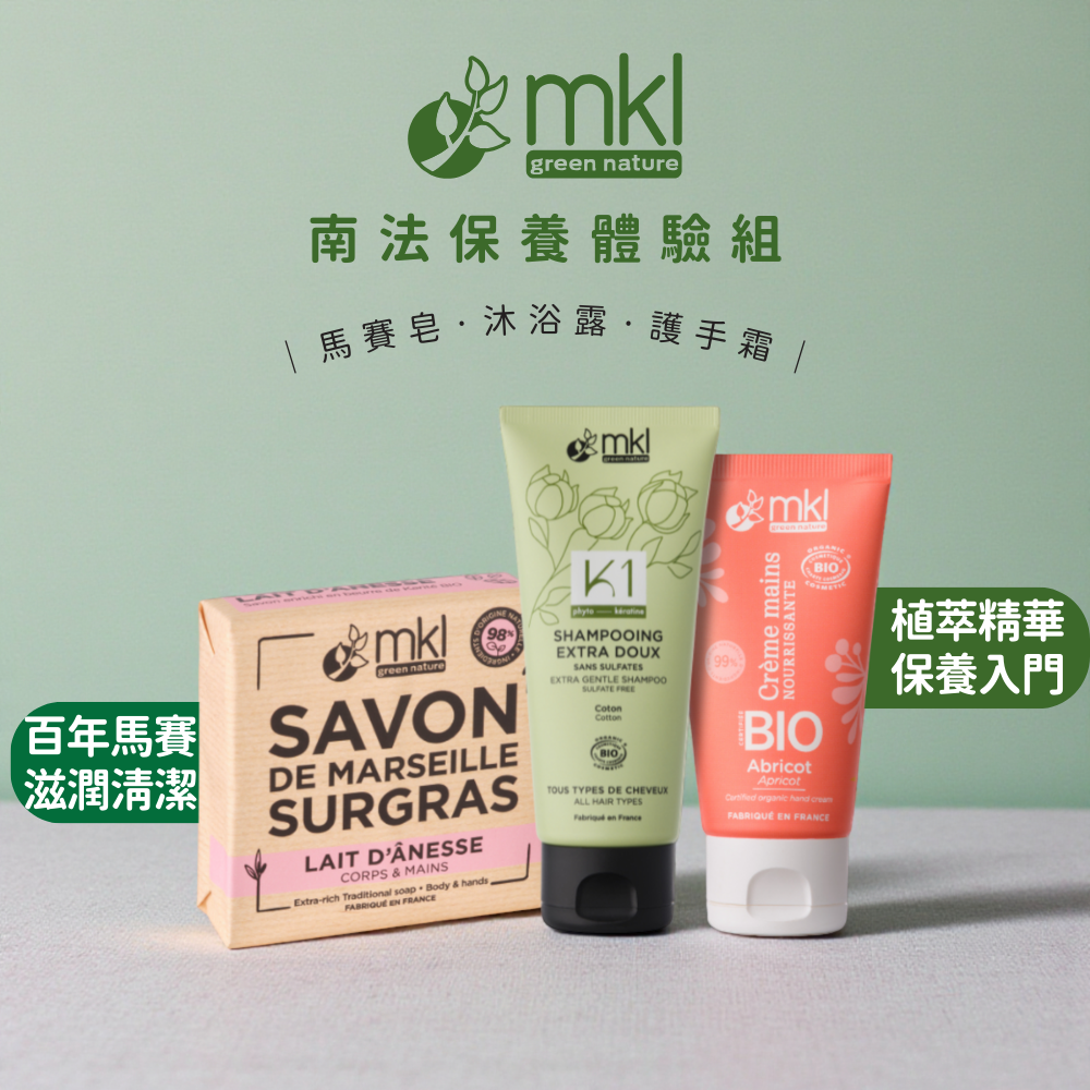 【MKL Green Nature】法國原裝進口洗沐品牌-有機洗沐體驗3入組|一次體驗來自南法的天然洗沐日常。
