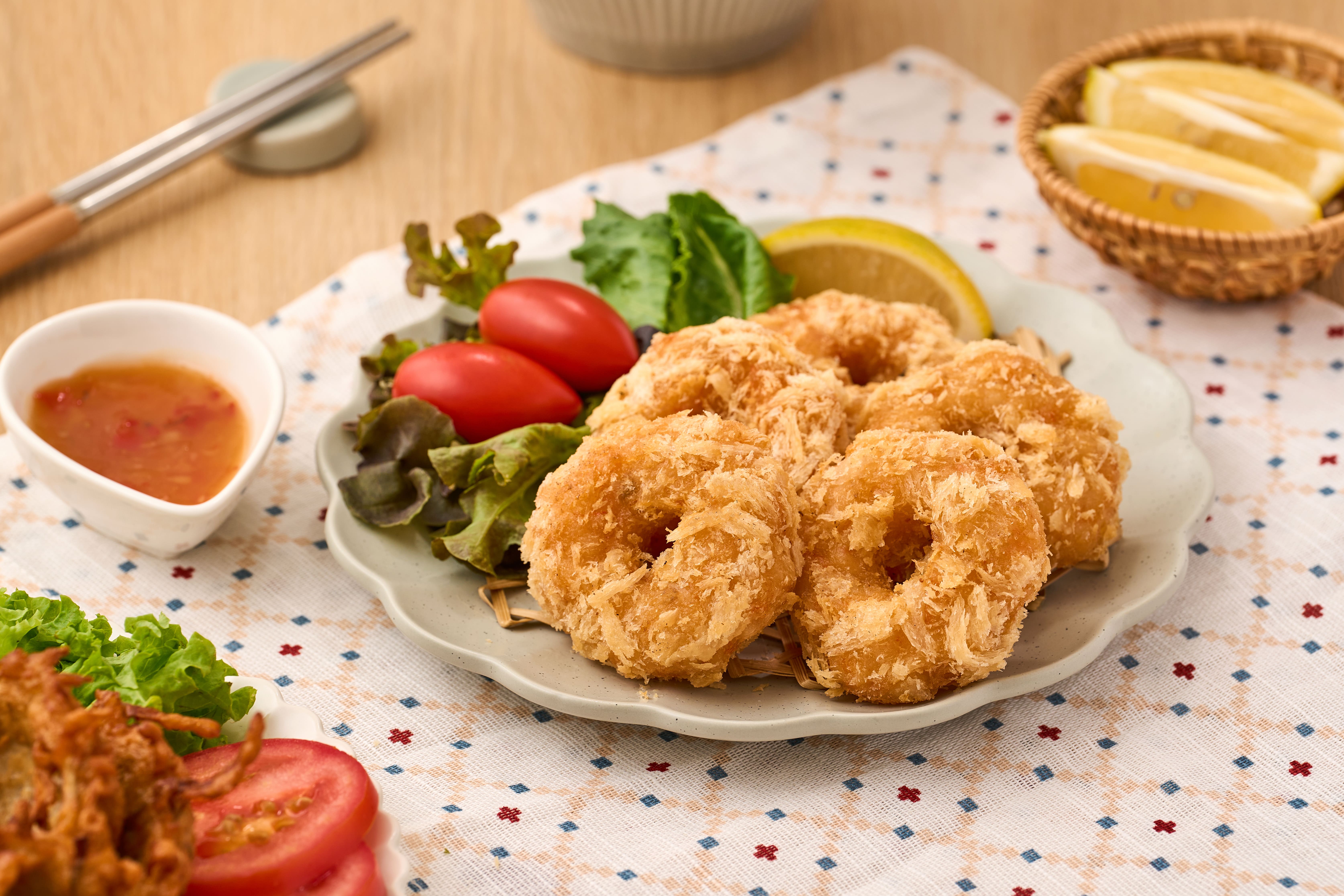 蝦滋圈 : 真蝦製成,外酥內Q,圈住味蕾,鮮香滿分