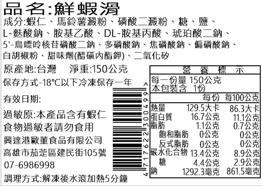 鮮蝦滑 : 鮮蝦含量高達90%以上,無添加魚漿,保留鮮甜與彈性