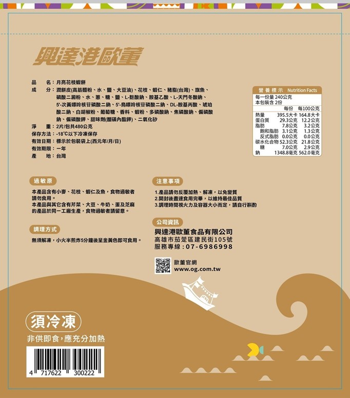 月亮花枝蝦餅 : 蝦仁花枝手工製成,鮮甜彈嫩海味餅