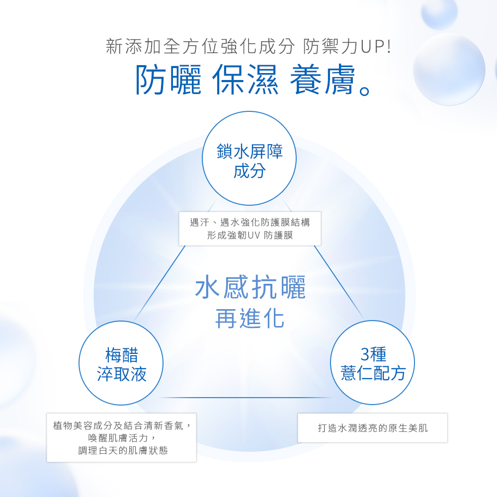 新添加「鎖水屏障成分」,遇汗、遇水形成強韌UV 防護膜