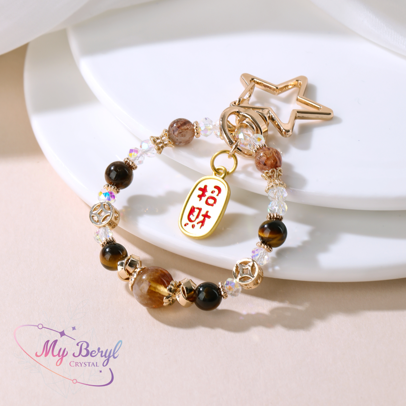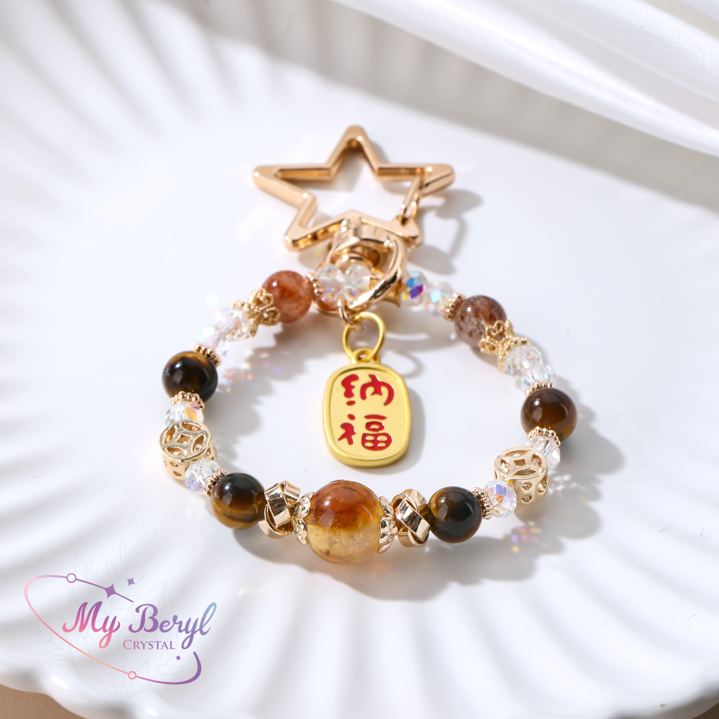 名稱 :【My Beryl 水晶】黑金超 x 虎眼石 x 黃水晶【金曜星辰.招財納福】水晶吊飾