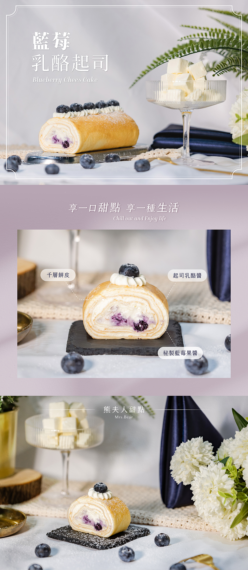 千層毛巾捲-藍莓乳酪起司