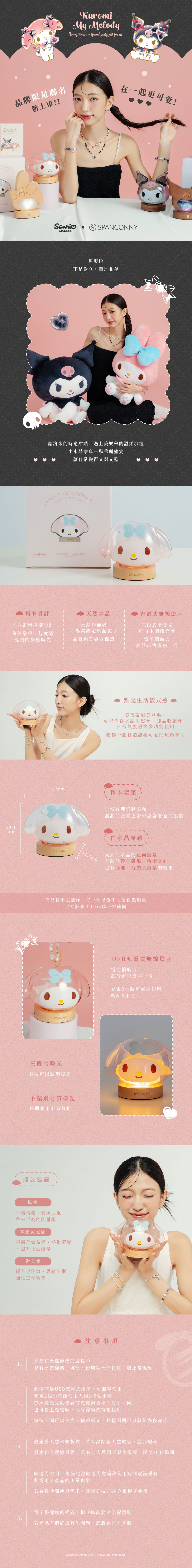 ◦ 美樂蒂玻璃杯◦ 櫸木燈座◦ 白水晶400g◦ USB充電線