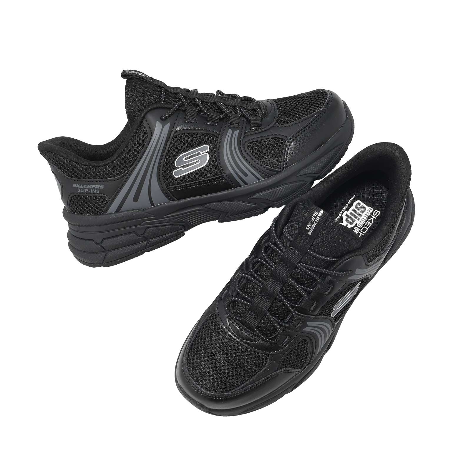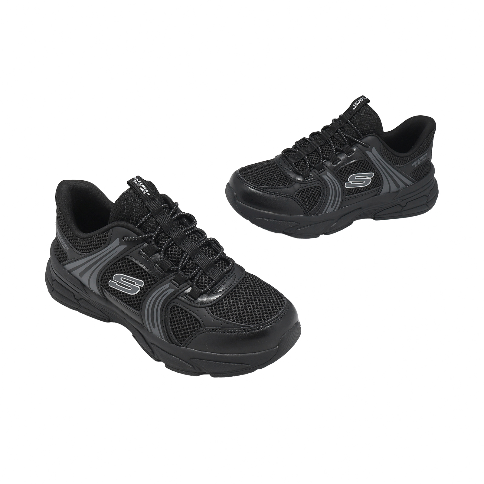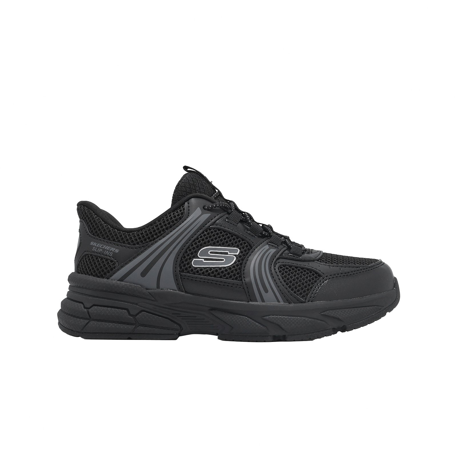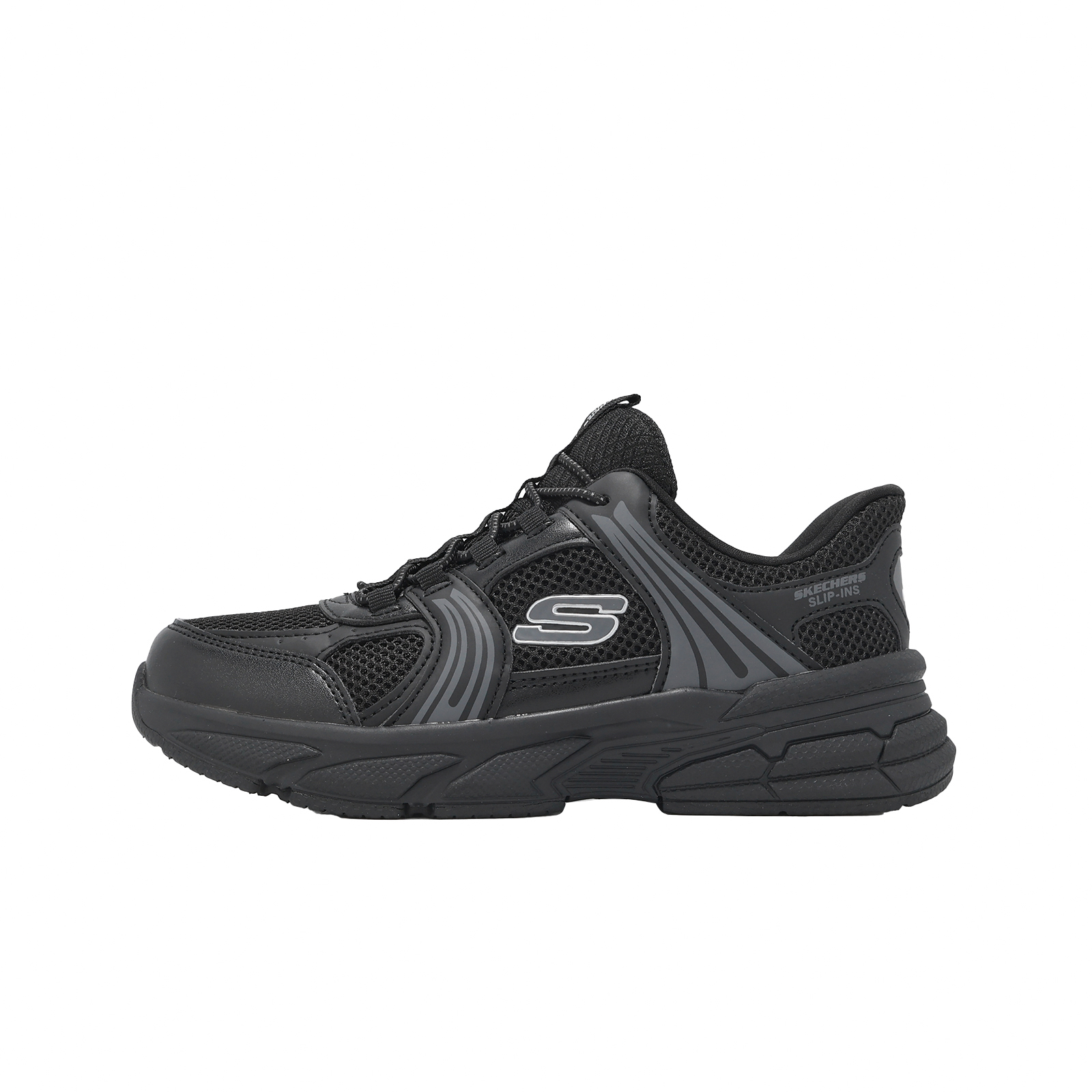 品牌: SKECHERS型號: 404204-LBKCC品名: Retro-Graph Slip-Ins版型: 版型正常* 鞋面採用網布搭配合成皮革設計,提供孩童雙足透氣且支撐腳感。