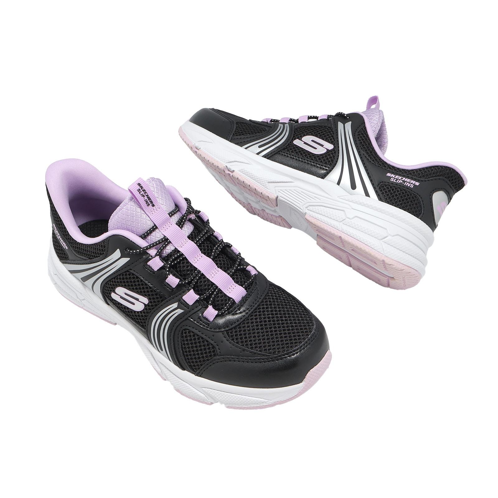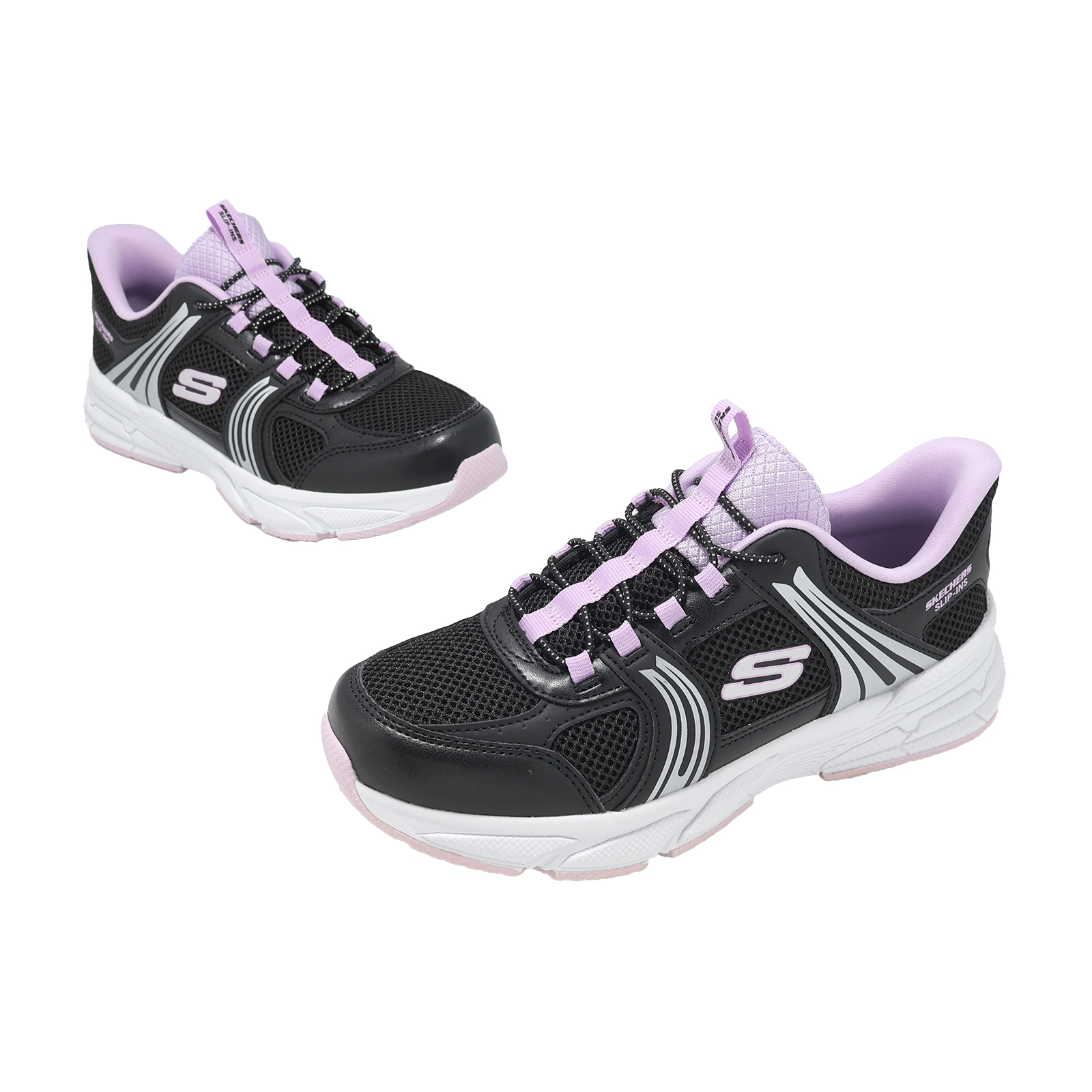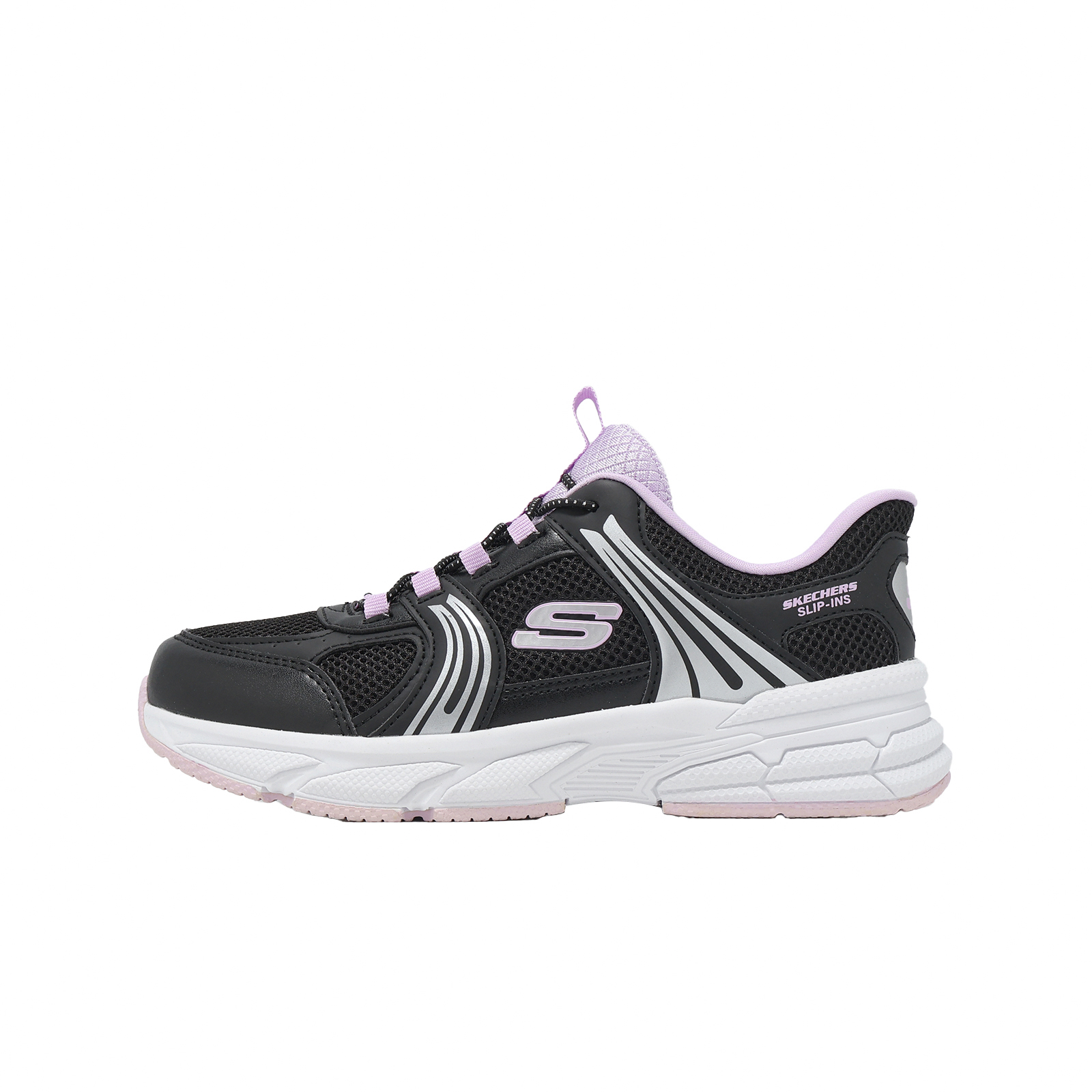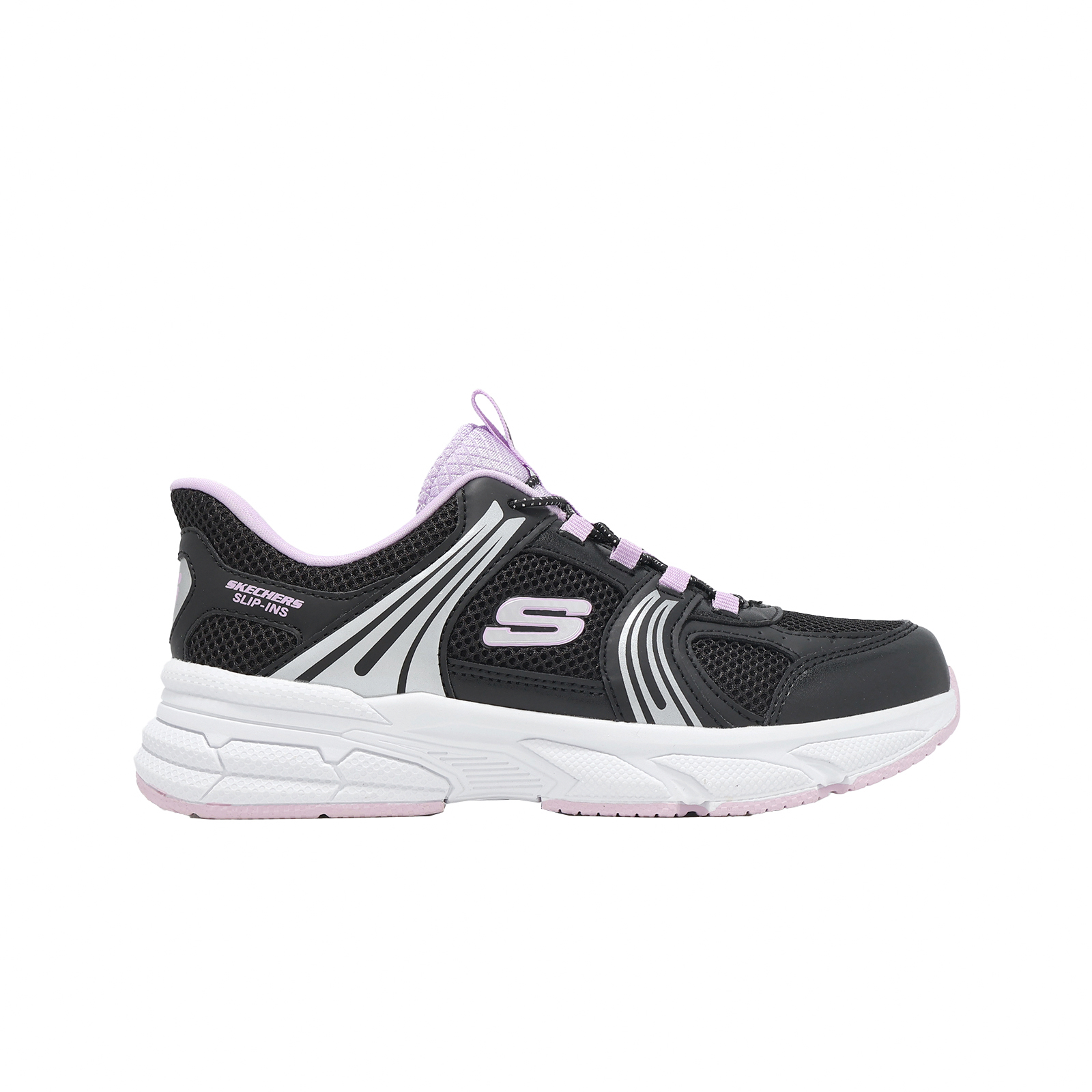 品牌: SKECHERS型號: 319078-LBKPR品名: Retro-Graph Slip-Ins版型: 版型正常* 鞋面採用網布搭配合成皮革設計,提供孩童雙足透氣且支撐腳感。