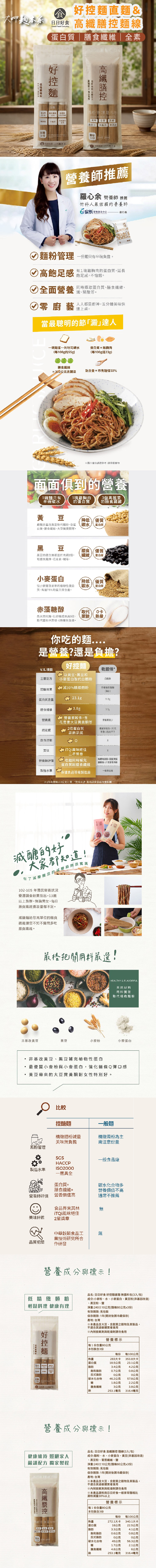 名稱:【日日好食x麵本家聯名款】好控麵原味純麵/高纖膳控細麵