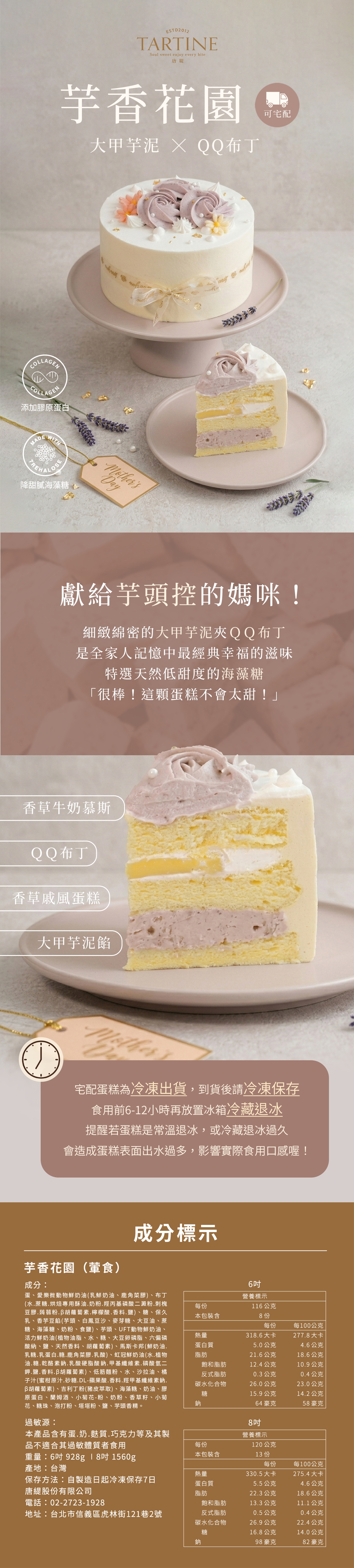 提醒蛋糕為冷凍宅配到府,建議於食用前至少8-12小時將蛋糕放置冷藏退冰,並於退冰後冷藏24小時內完食方為最佳賞味期
