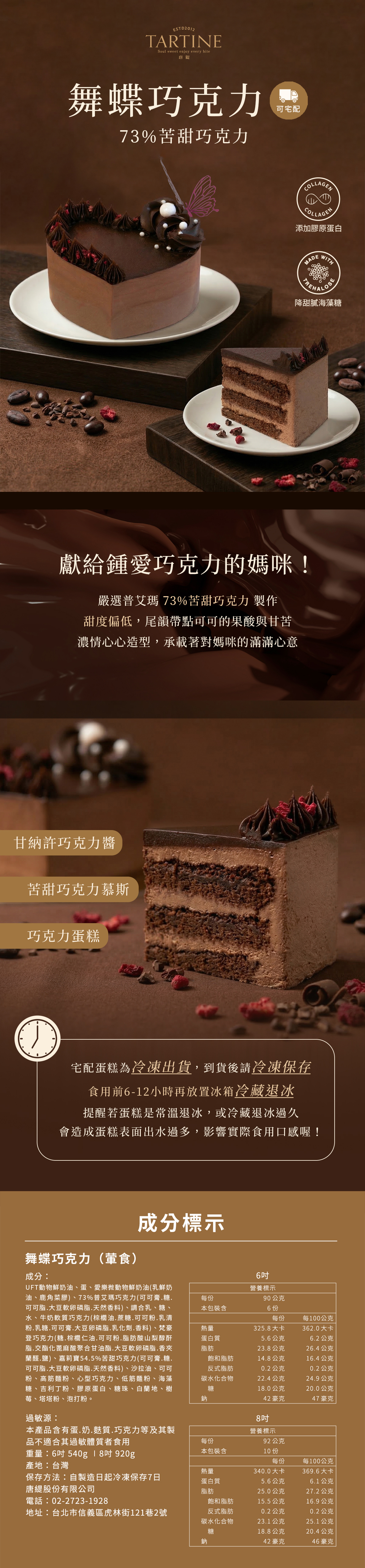 提醒蛋糕為冷凍宅配到府,建議於食用前至少8-12小時將蛋糕放置冷藏退冰,並於退冰後冷藏24小時內完食方為最佳賞味期