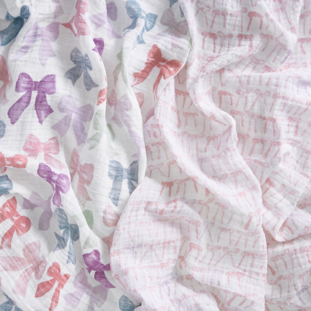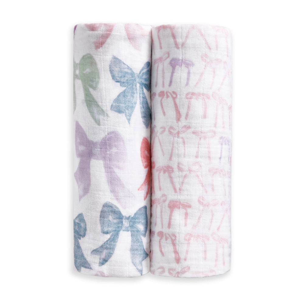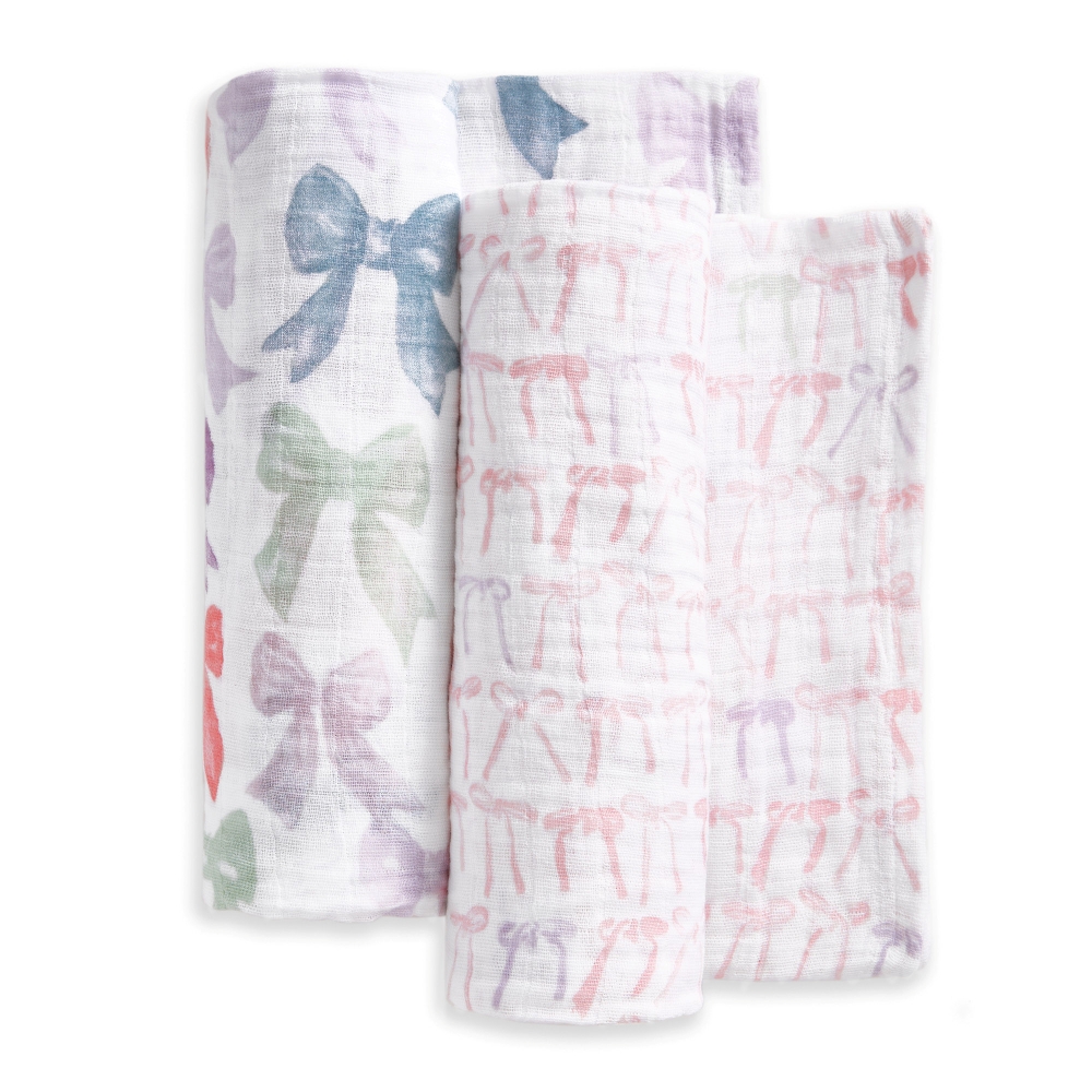 【aden+anais】有機棉包巾2入/裸粉蝴蝶結 新生兒包巾 月中愛用 敏感肌推薦 推車遮陽巾 寶寶床單 拍嗝巾✨新生禮✨彌月禮✨育兒好物✨四季好物