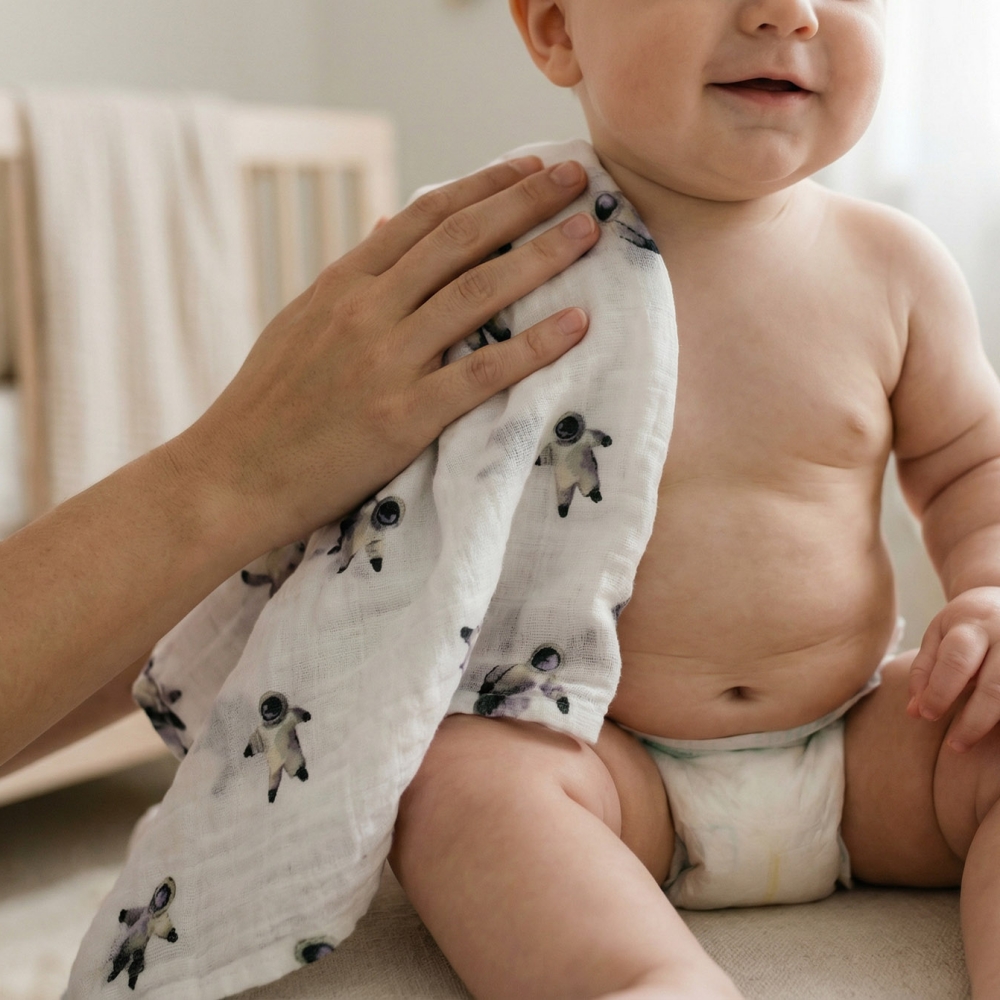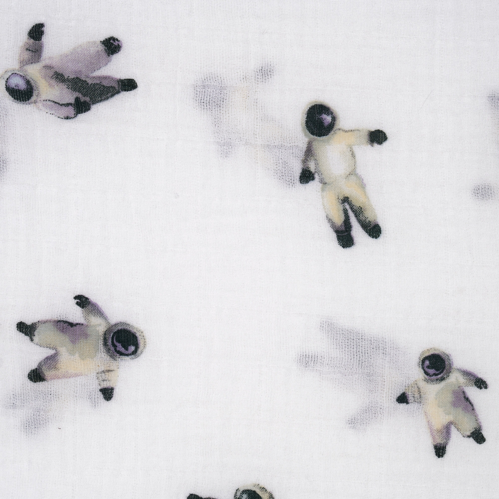只想給寶寶最貼心的柔軟呵護! • 夢幻的行星和星空點綴著太空人,色調清新可愛,帶來遨遊太空的趣味想像。• 通過GOTS有機棉認證,不使用農藥和化學肥料栽種,有助於減少對環境的負面影響,同時也符合環保需求。• 採用100% GOTS認證有機棉紗布,柔軟舒適、透氣、保暖,並且無毒、無化學藥劑,非常適合敏感肌以及異膚的寶寶使用。• 運用開放的稀鬆編織法,減少嬰兒過熱窒息的風險。 • 一巾多用,包巾不僅能當哺乳巾也能作為嬰兒蓋毯以及推車遮陽巾,更可以當作居家的床單以及枕頭套,多種用途超方便。• 套洗衣袋機洗,吊掛晾曬快乾,輕鬆維持衛生。