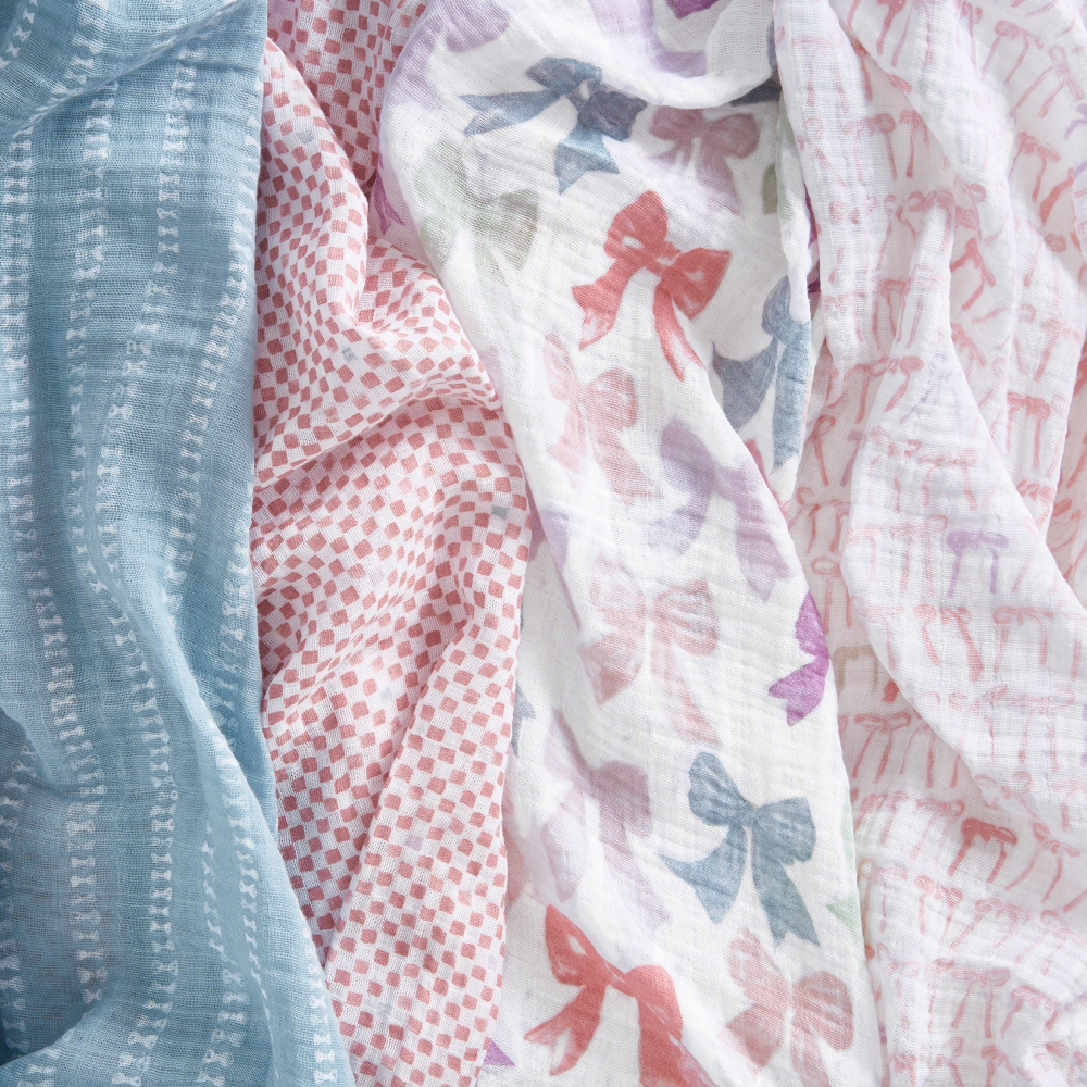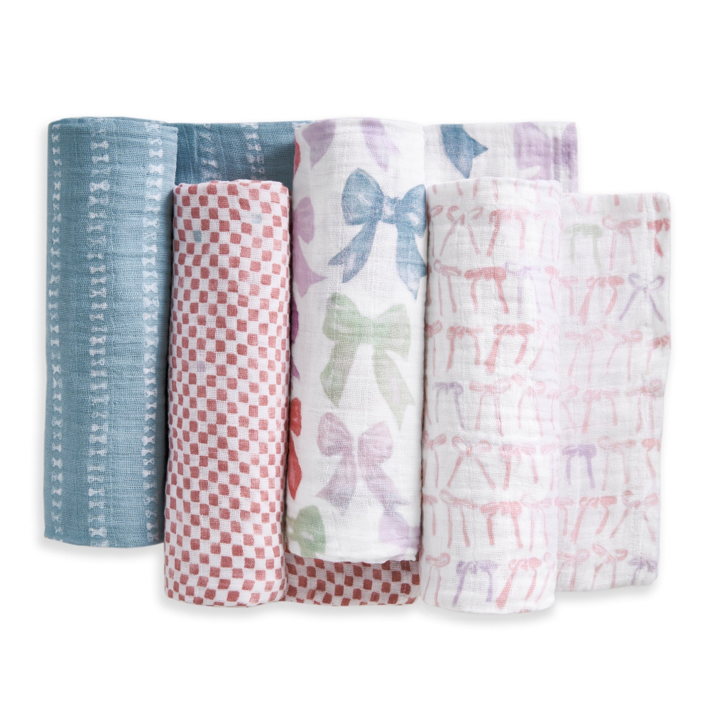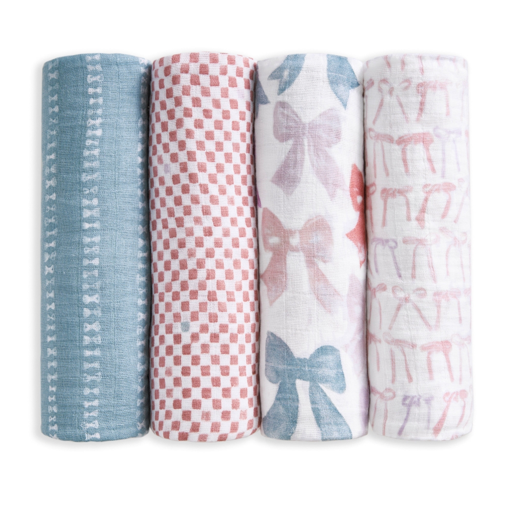 【aden+anais】有機棉包巾4入/裸粉蝴蝶結 新生兒包巾 一巾多用 四季皆適用 安心包覆感 柔軟小被被 哺乳巾✨新生禮✨彌月禮✨育兒好物✨四季好物