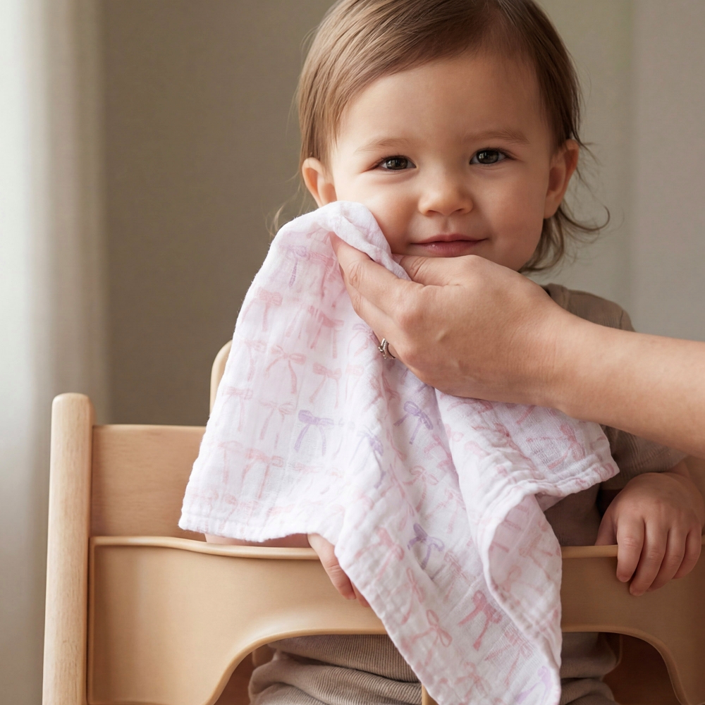 只想給寶寶最貼心的柔軟呵護! • 柔粉色蝴蝶結印花,線條細緻清爽,色調柔和甜美,展現優雅可愛的夢幻氛圍。• 通過GOTS有機棉認證,不使用農藥和化學肥料栽種,有助於減少對環境的負面影響,同時也符合環保需求。• 採用100% GOTS認證有機棉紗布,柔軟舒適、透氣、保暖,並且無毒、無化學藥劑,非常適合敏感肌以及異膚的寶寶使用。• 運用開放的稀鬆編織法,減少嬰兒過熱窒息的風險。 • 一巾多用,包巾不僅能當哺乳巾也能作為嬰兒蓋毯以及推車遮陽巾,更可以當作居家的床單以及枕頭套,多種用途超方便。• 套洗衣袋機洗,吊掛晾曬快乾,輕鬆維持衛生。