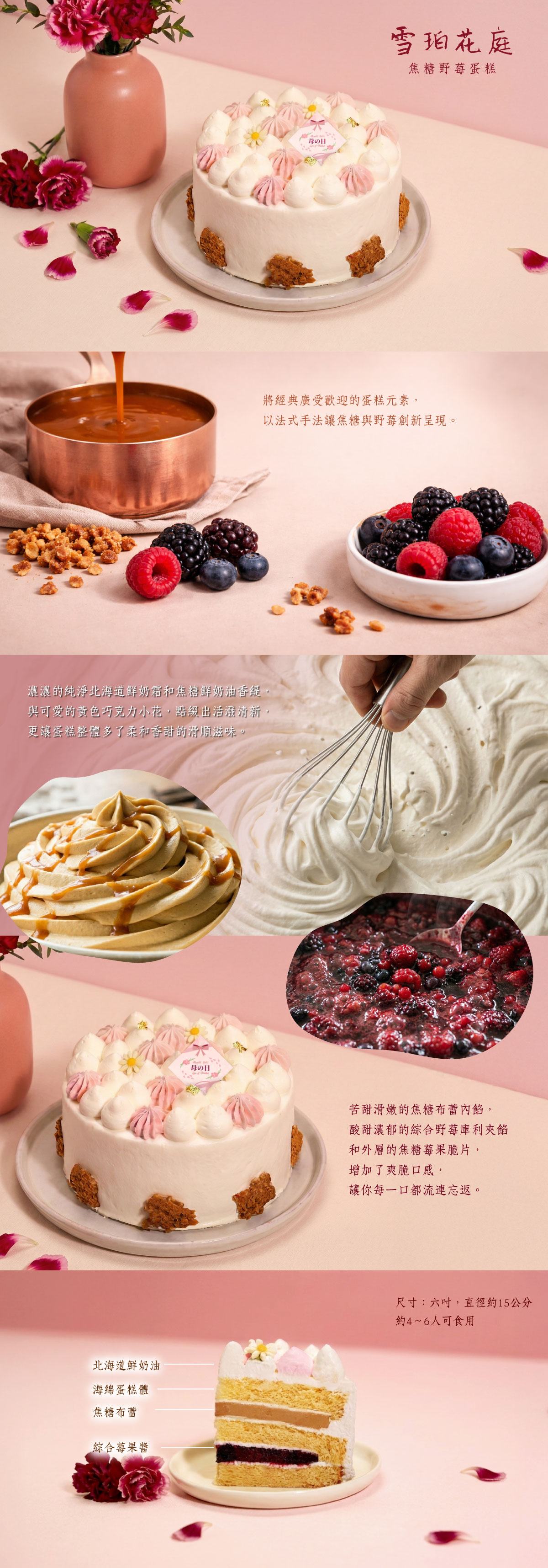 商品內容名稱:【七見櫻堂︱母親節限定】雪珀花庭-焦糖野莓蛋糕(6吋)貨號:0101001401材質:食品尺寸:直徑約 15 cm,高度約 6 cm