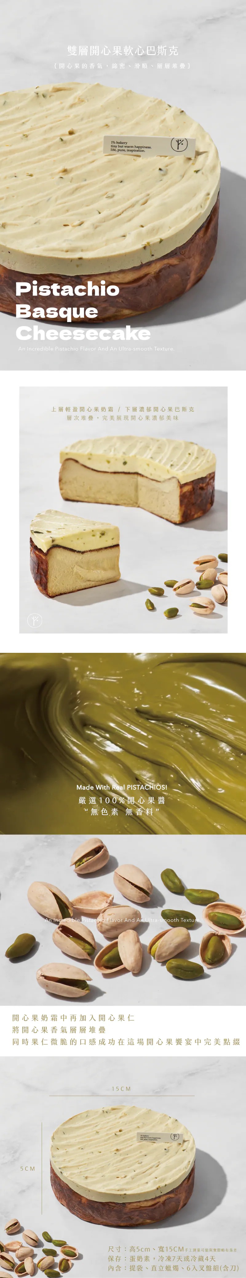 上層是輕盈的開心果奶霜,下層是濃郁的巴斯克乳酪。開心果的香氣,從第一口開始,慢慢展開、層層堆疊。綿密、滑順,帶一點堅果的微脆。會讓人不自覺再吃一口。