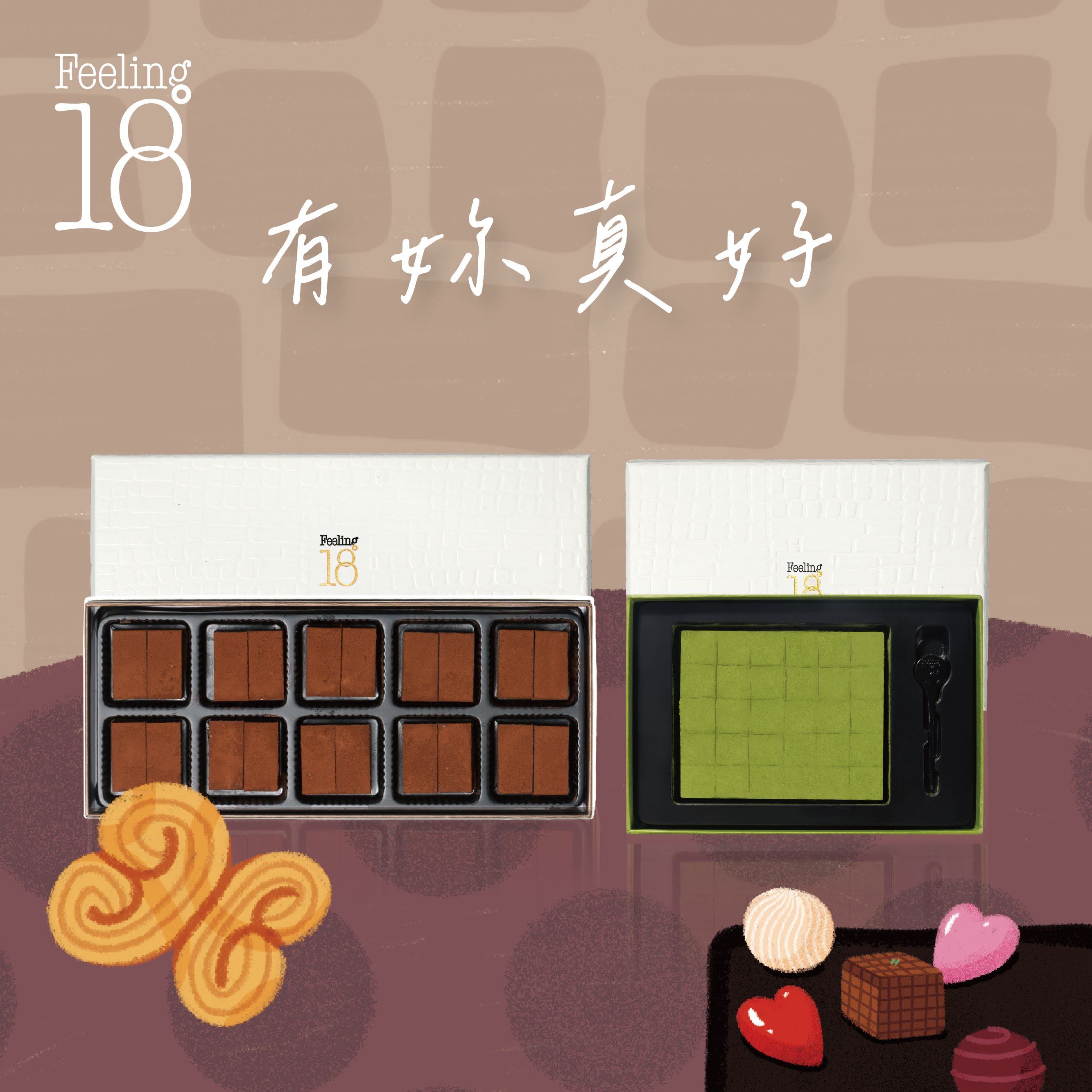 名稱:【Feeling18】日式出雲抹茶生巧克力(小顆30入) 成份:白巧克力、鮮奶油、發酵奶油、米酒、日本進口抹茶粉、茉莉綠茶葉。重量:90公克/盒 (小顆30入),本品含酒為提香。保存方式:冷藏保存,嚐鮮期限7日,保存期限14日