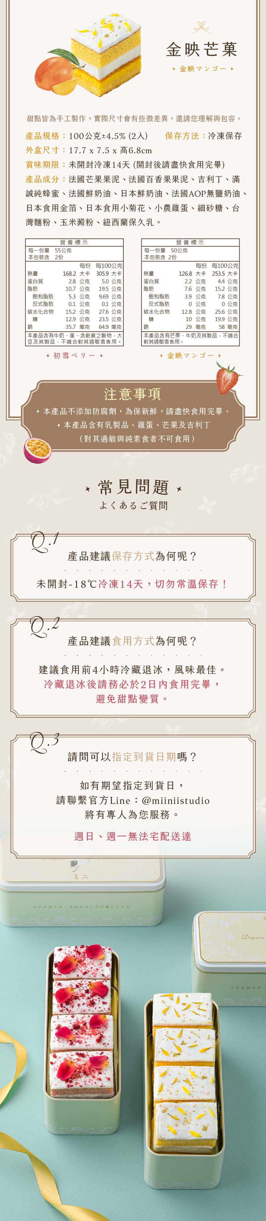 LINE禮物獨家【ミニ・耘菓】綜合日法鐵盒蛋糕 ( 初雪莓菓+金映芒菓 各2入,共4入/盒 ) | NearMe | 線上送禮平台『獨家支援 收禮者改選禮物』