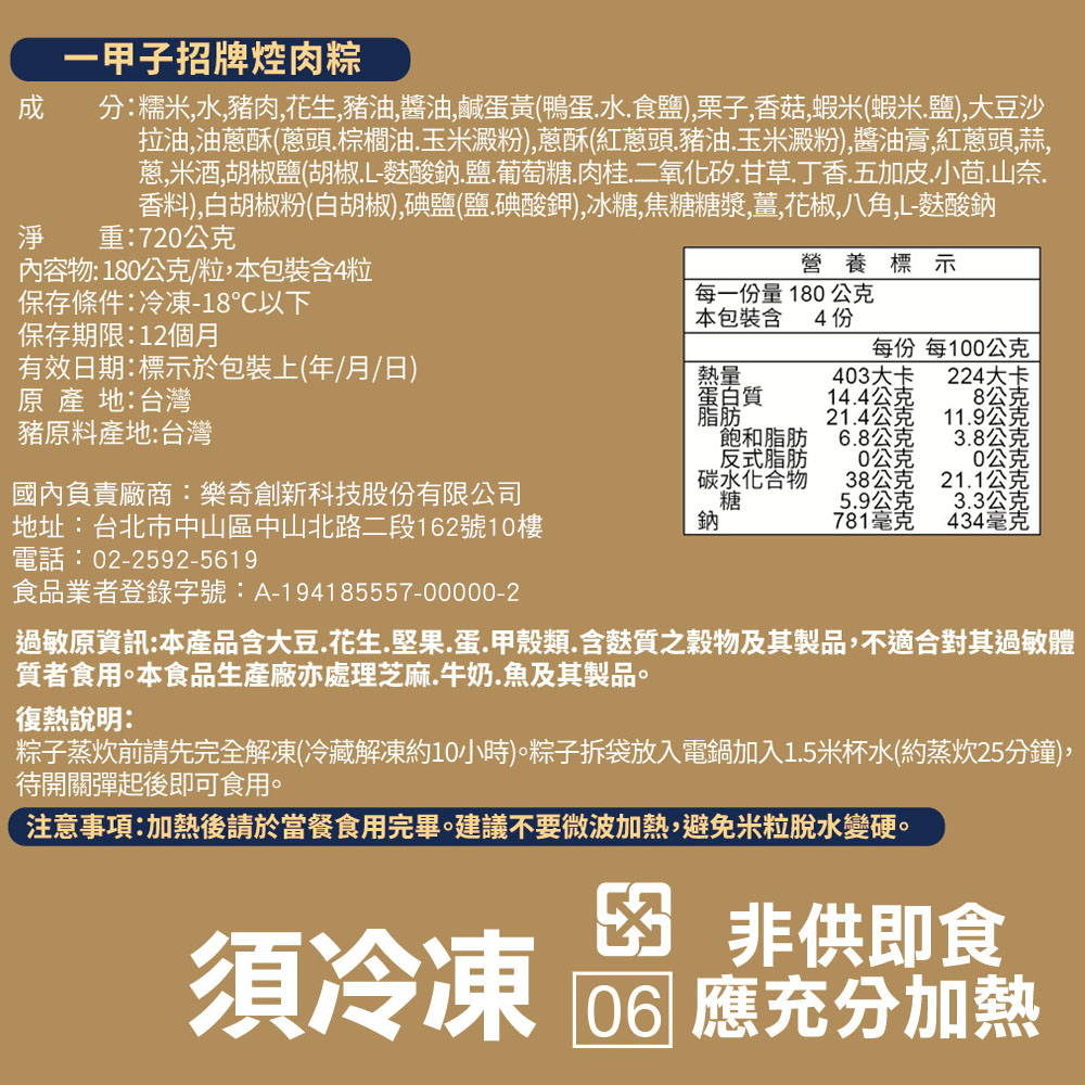 4.商品重(容)量:720g(招牌焢肉粽180g*4顆)/袋5.原產地(國):台灣