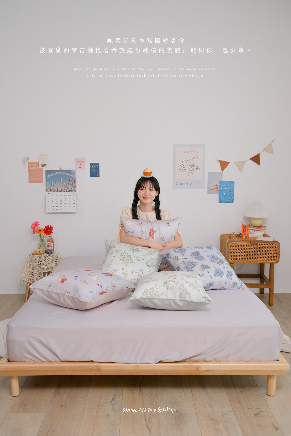 「最溫柔的陪伴,是身邊大自然的圍繞。」◆Sybil-Ho聯名繪製,氣質柔美◆印花面60支天絲、素色面80支天絲棉◆尺寸:50*50cm
