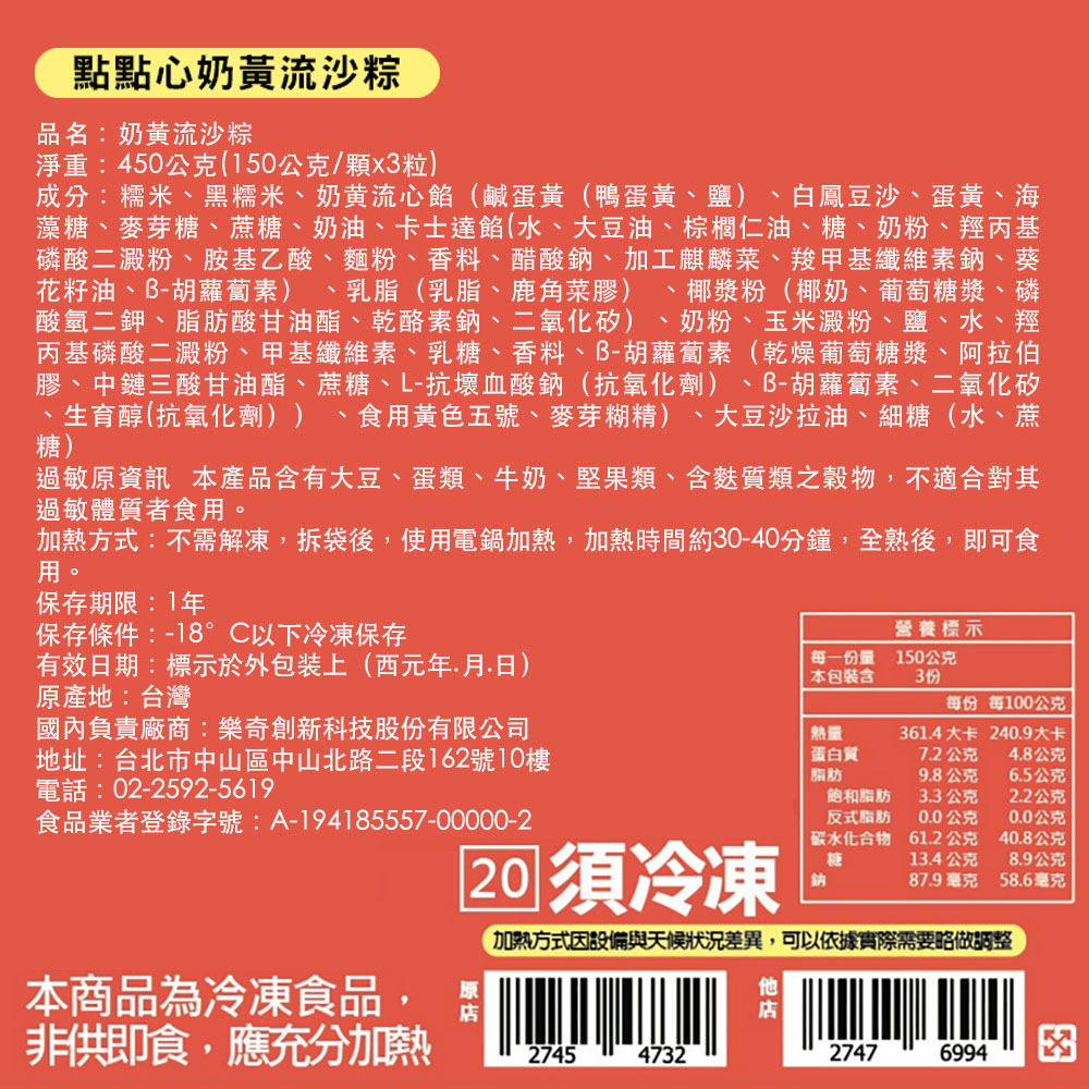 4.商品重(容)量:450g(奶黃流沙粽150g*3顆)/袋5.原產地(國):台灣