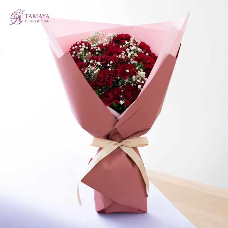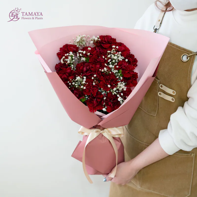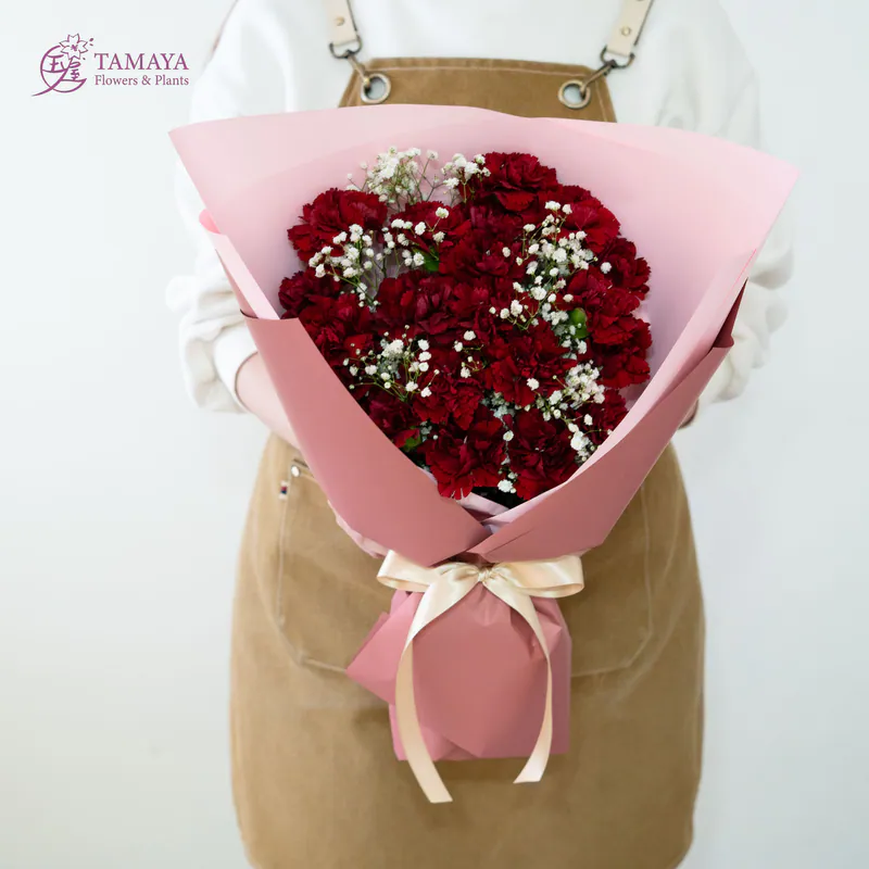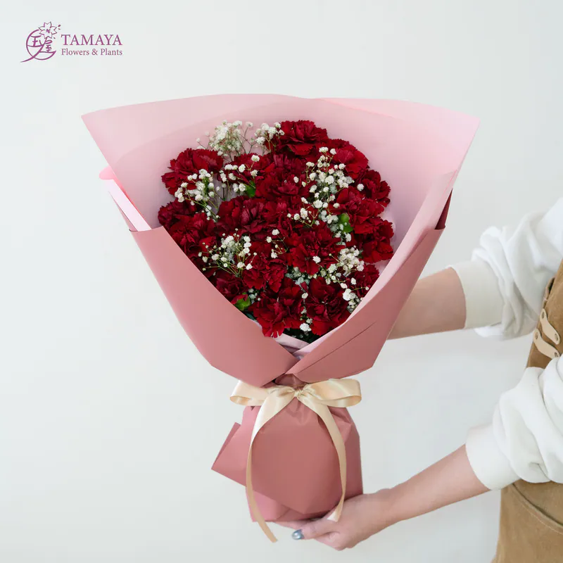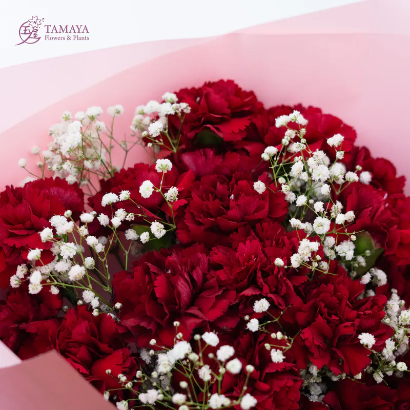 紅色的張揚與熱烈,搭配滿天星的經典花禮,