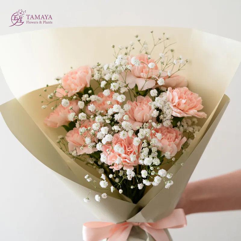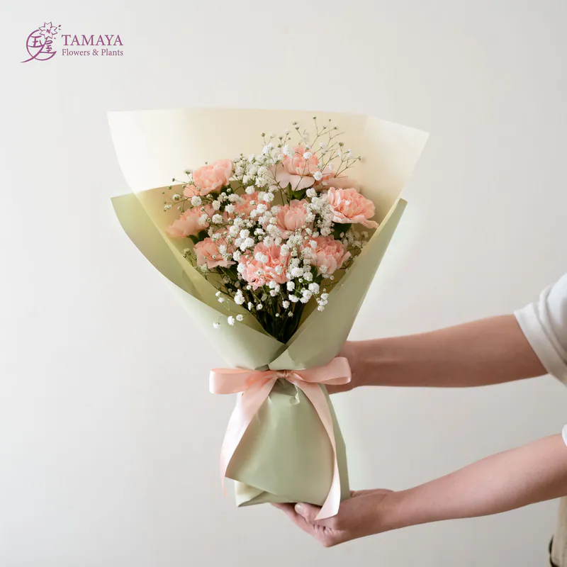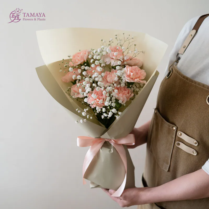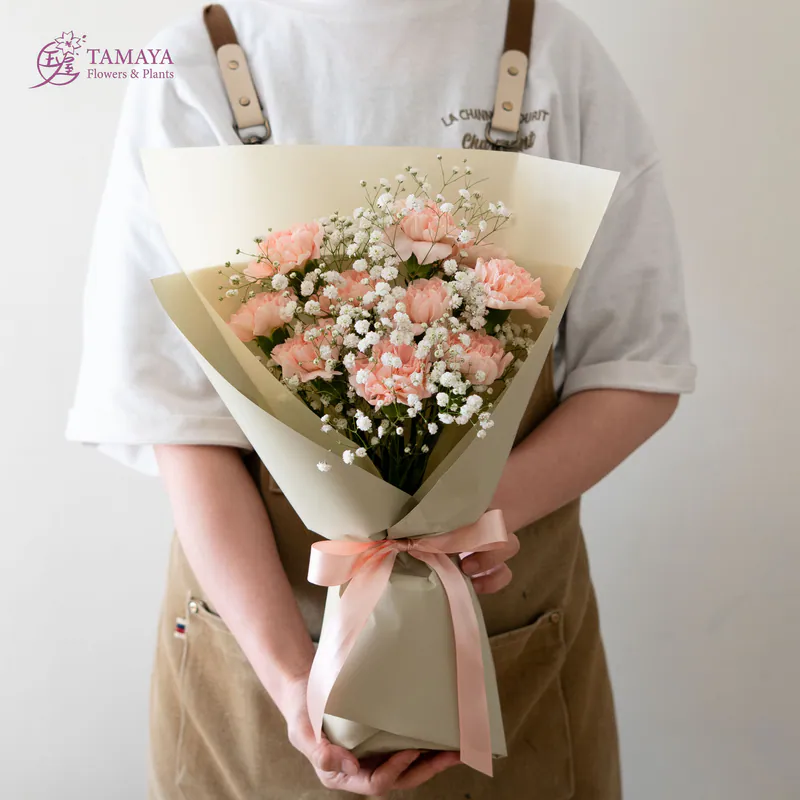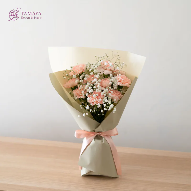杏粉色的柔和與細膩,搭配滿天星的經典花禮,